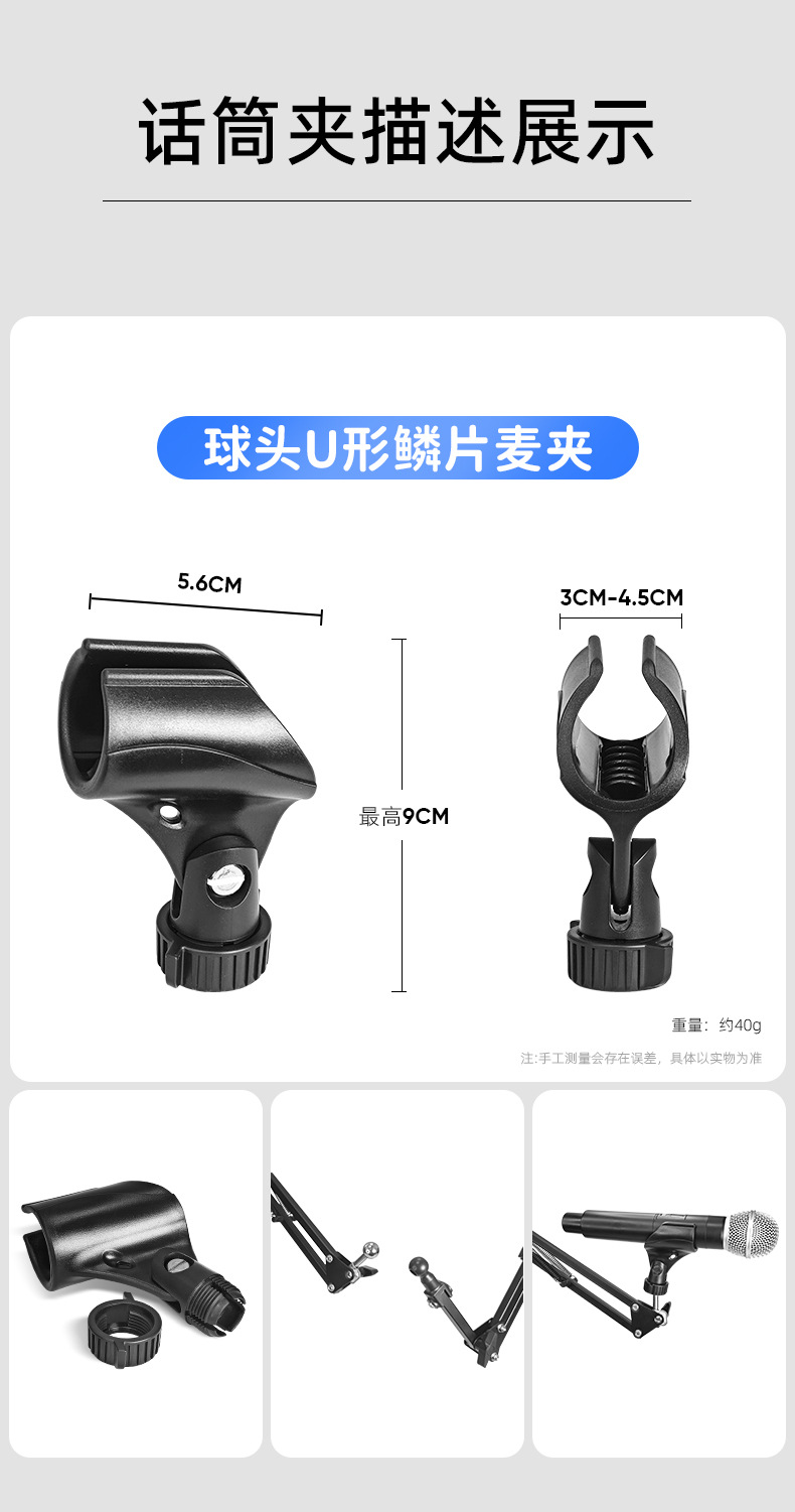 厂家批发麦克风话筒夹子有线无线固定弹簧咪夹直播支架配件便携式