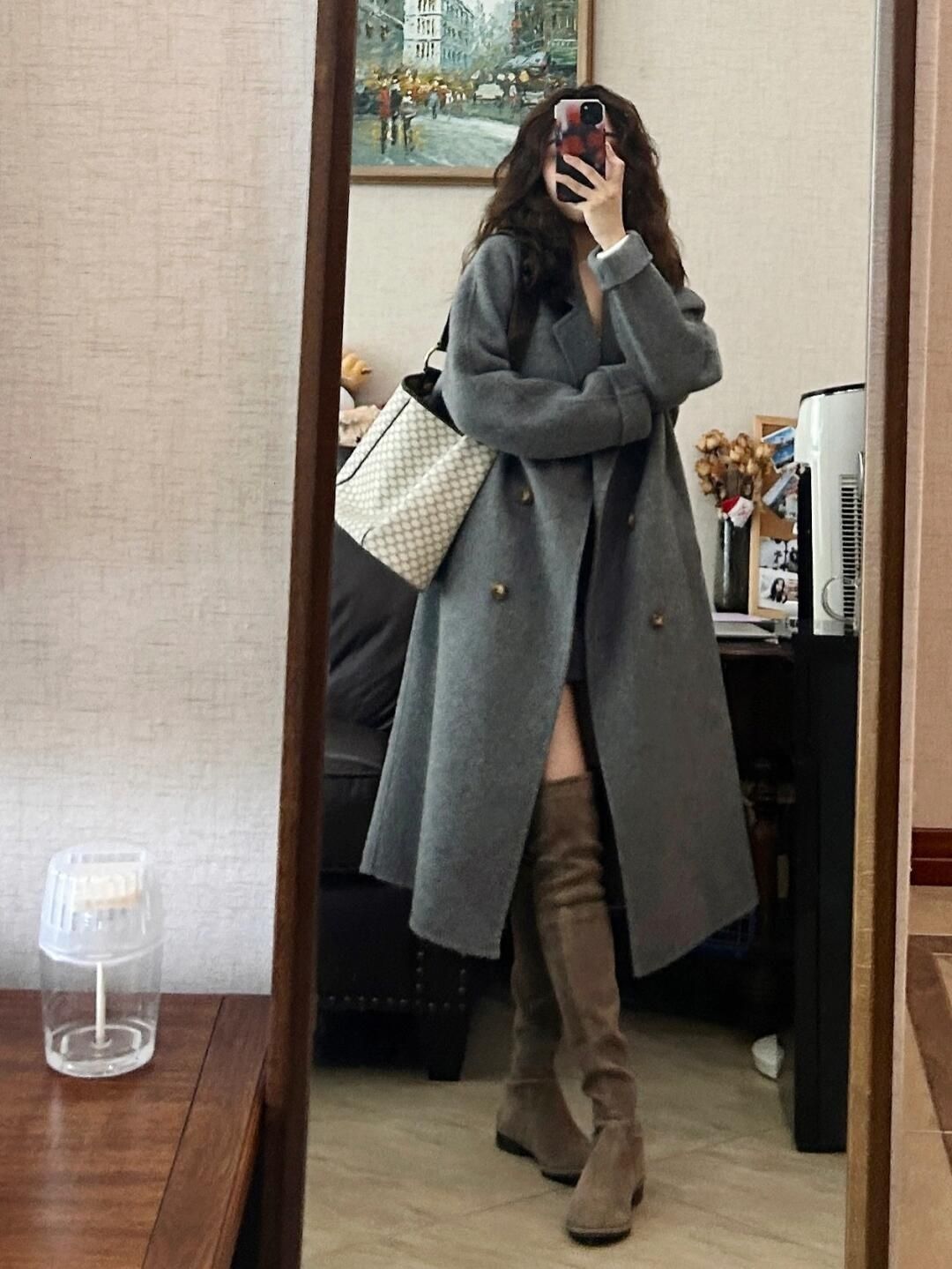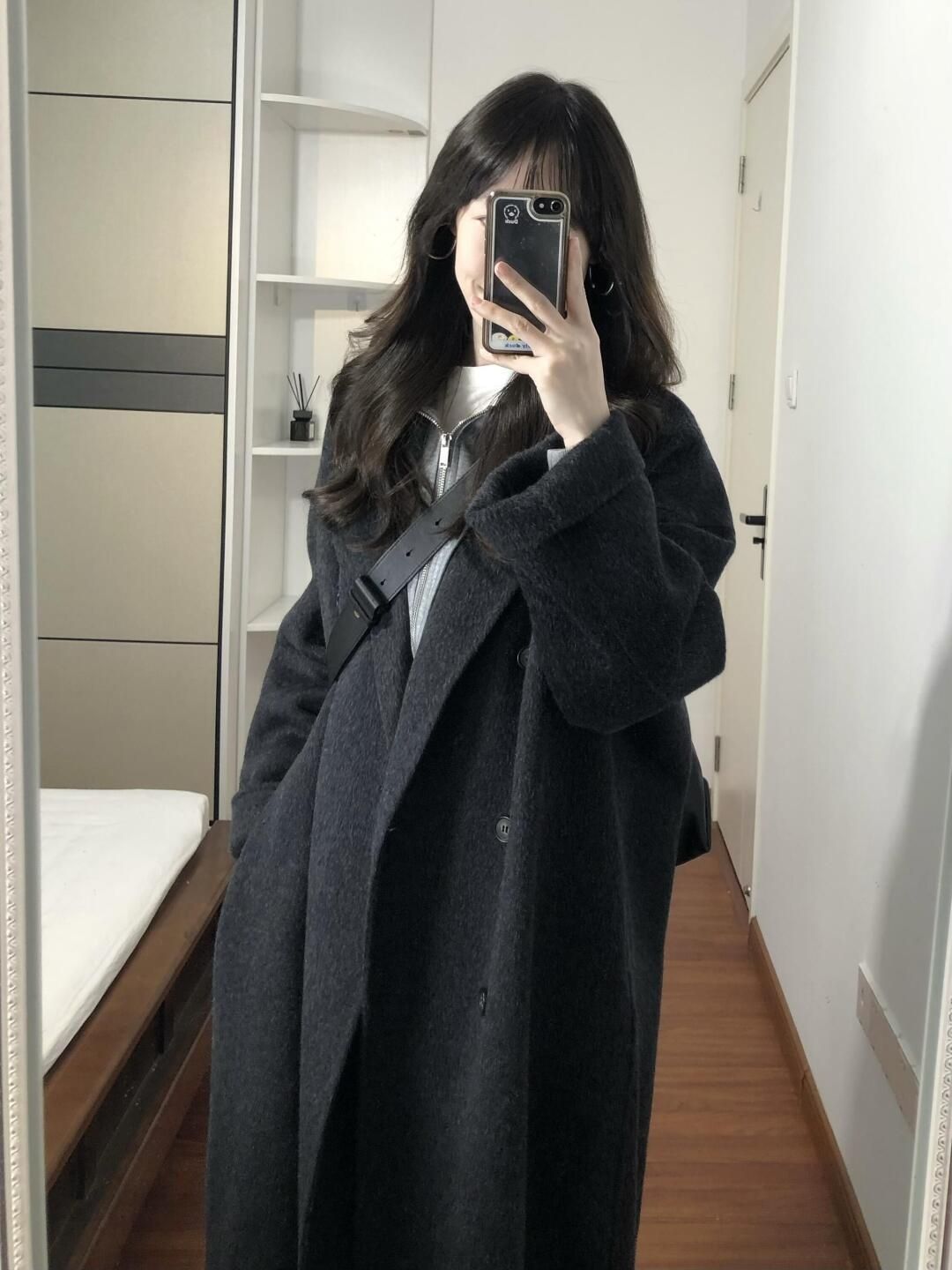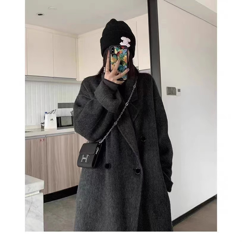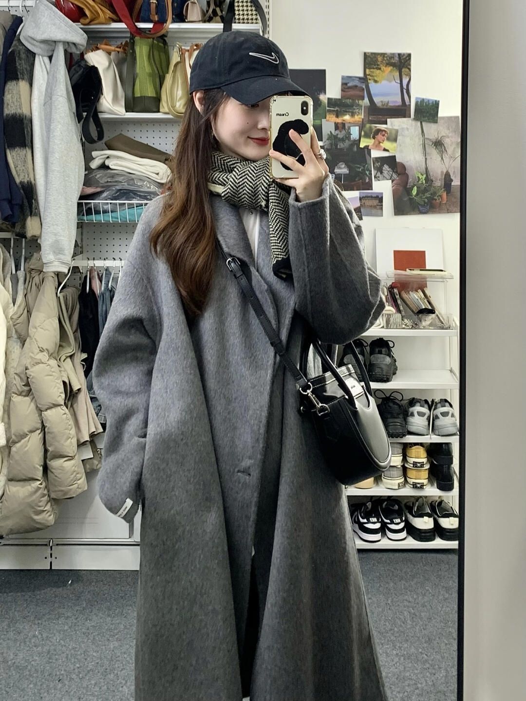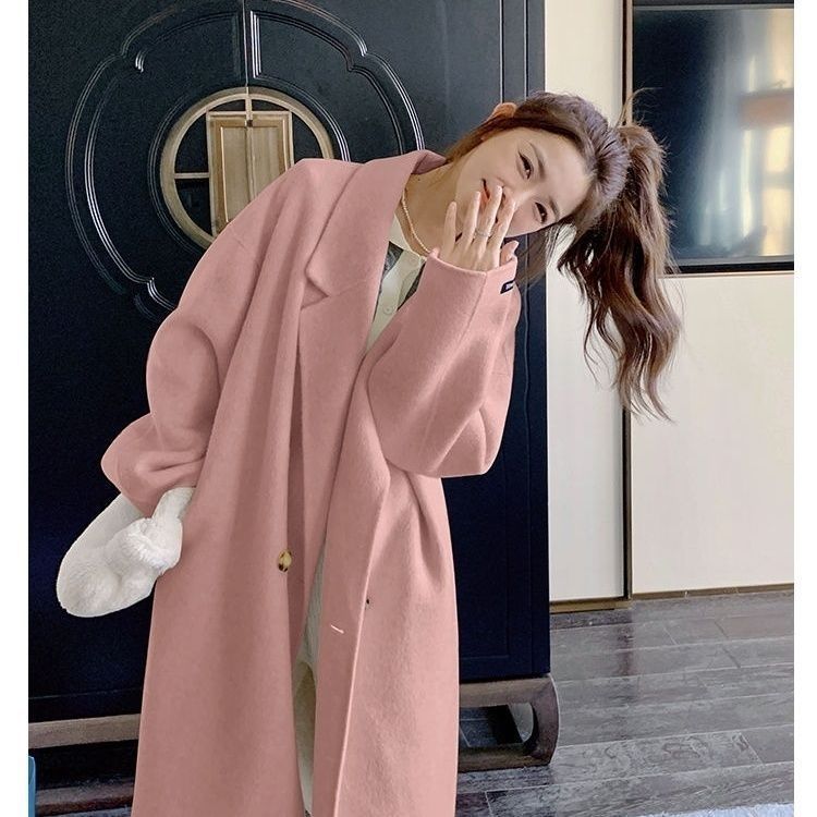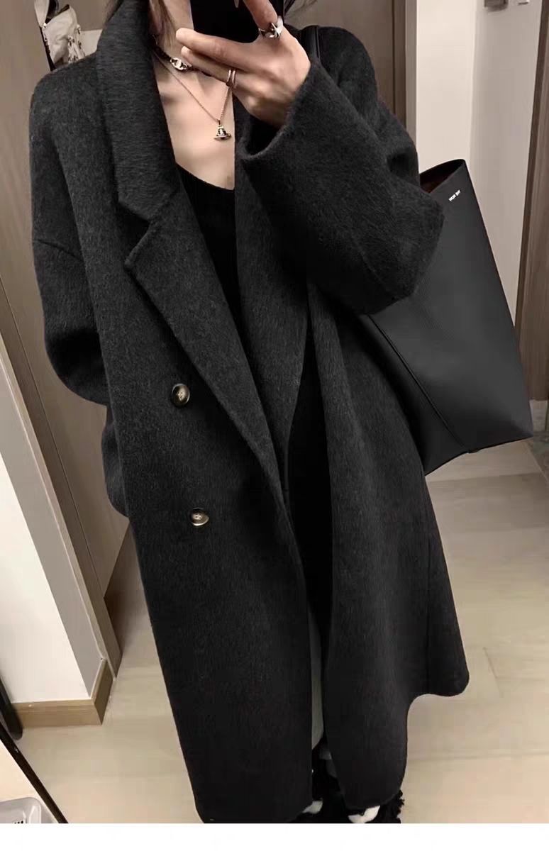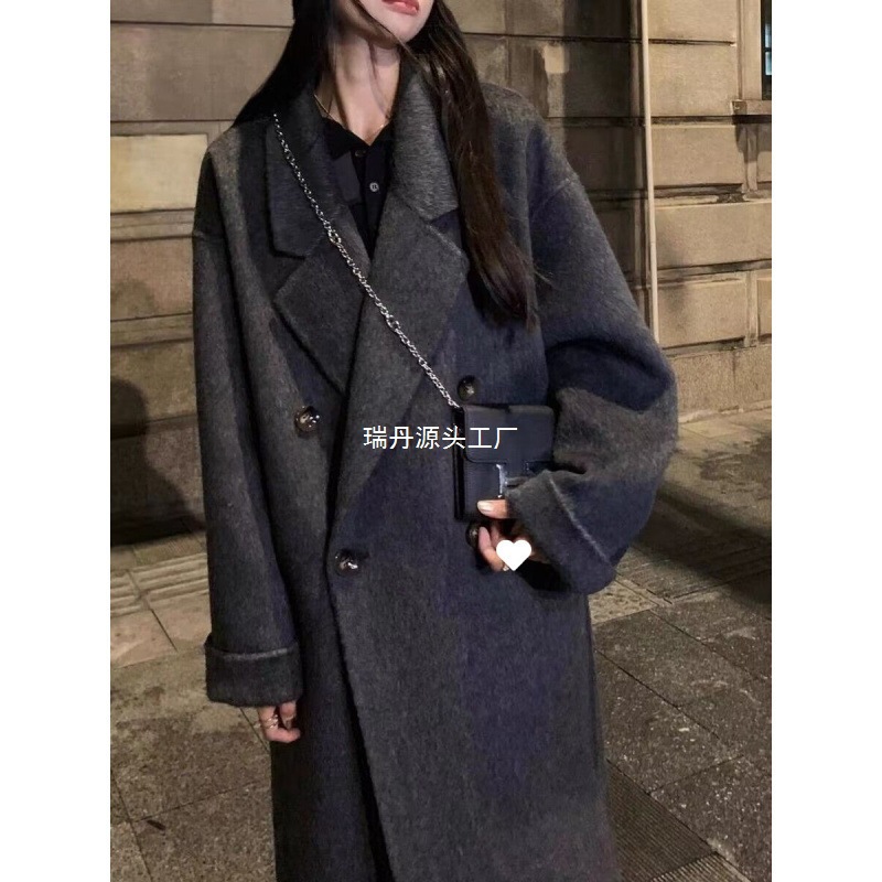 2025 秋冬新作両面ウールコートレディースロングカシミヤ韓国風ルーズウールコート気質痩身女性