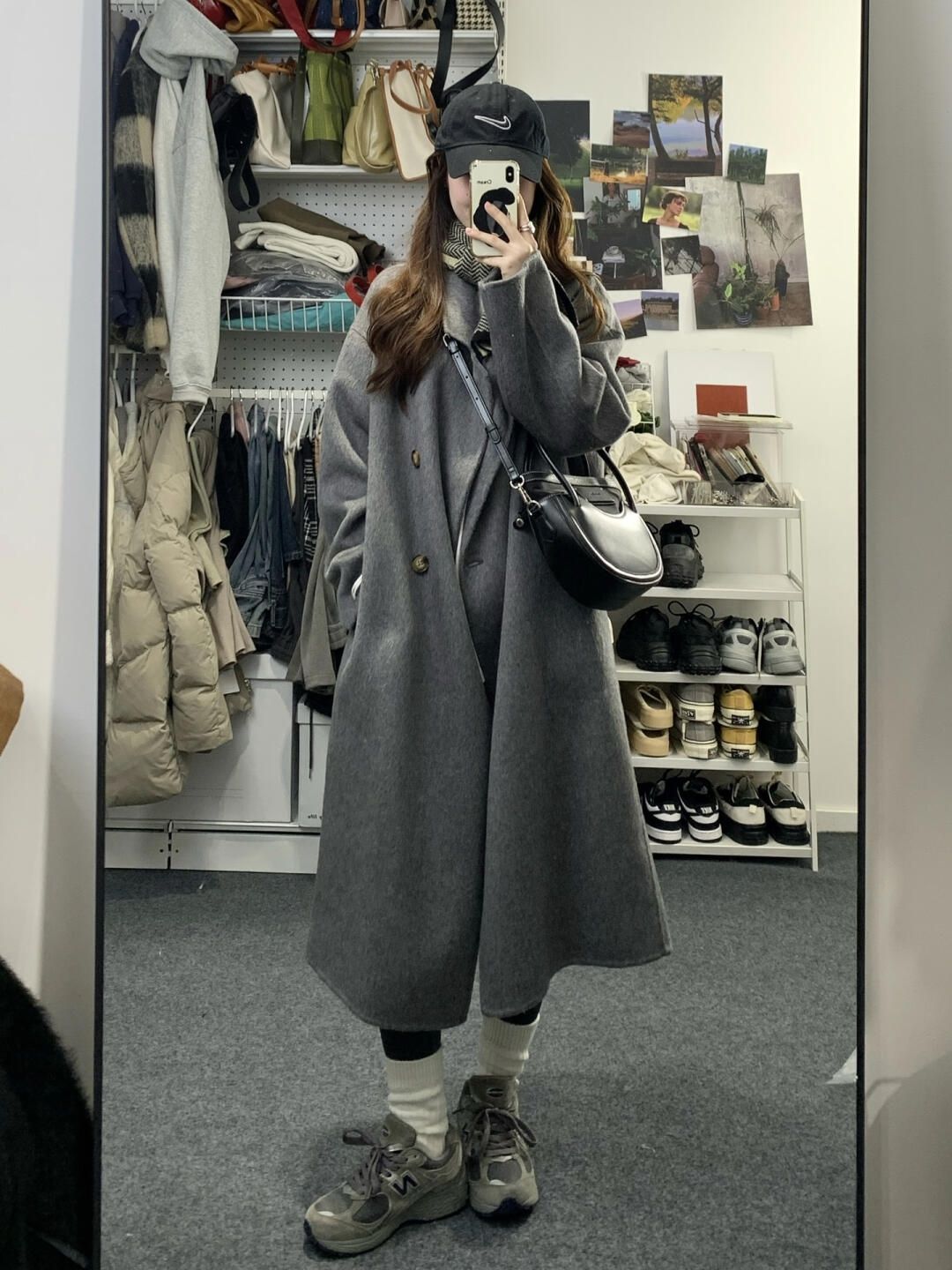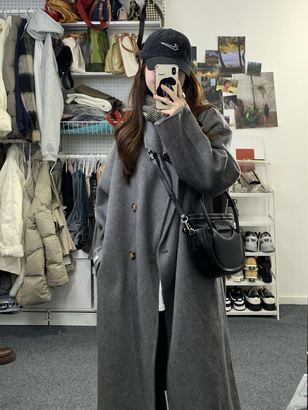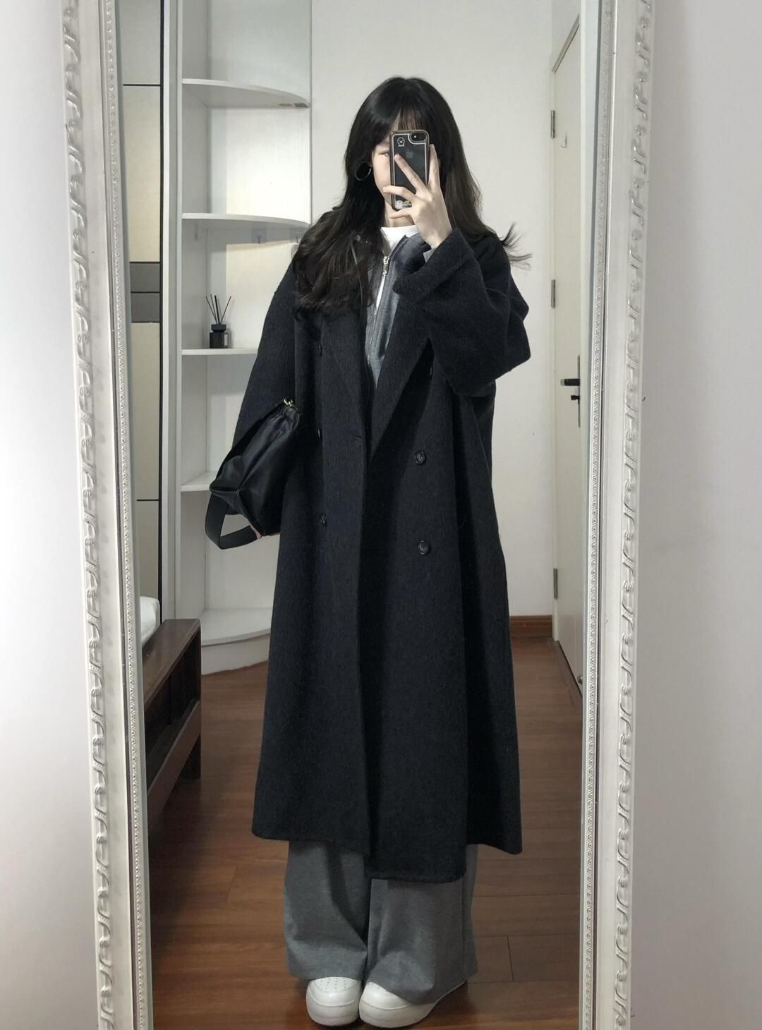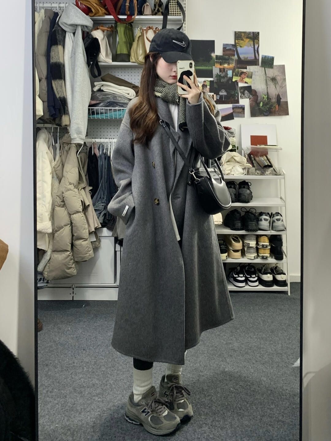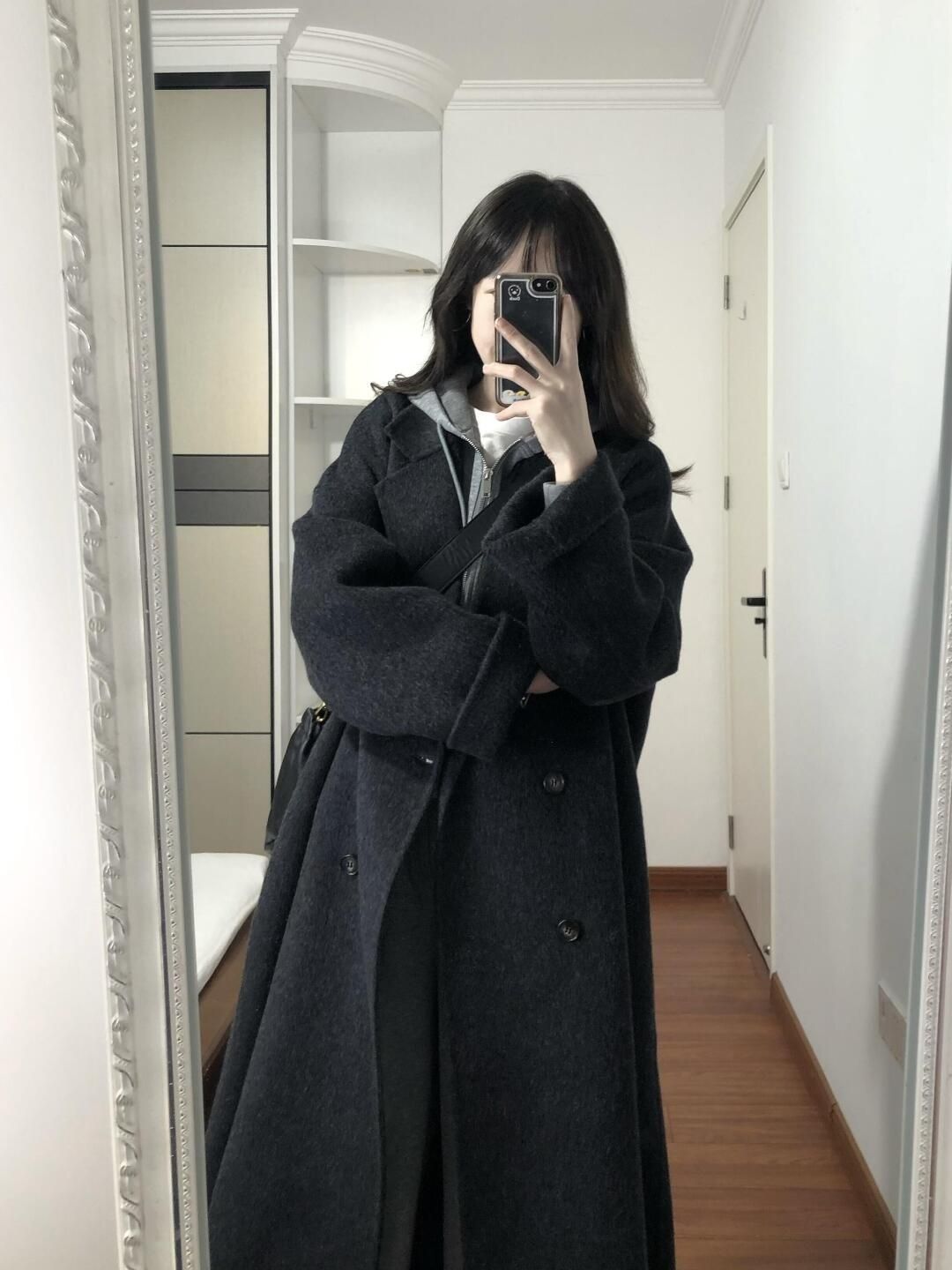 2025 秋冬新作両面ウールコートレディースロングカシミヤ韓国風ルーズウールコート気質痩身女性