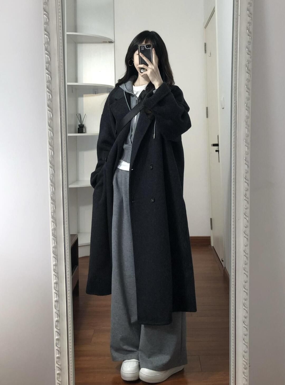 女性のためのシンプルな黒のウールコート 2025 秋と冬の新しいハイエンド韓国ヘボンスタイルウールコートトレンディ