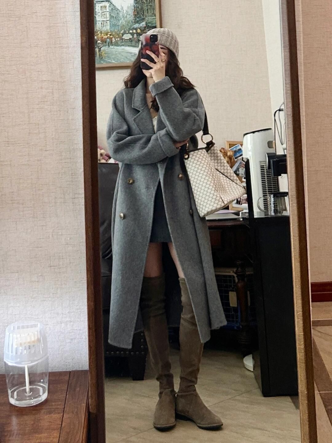工場直販 両面カシミヤコート レディース ロング丈 2025秋冬新作 韓国風 ダブルボタン 細見え ウールコート