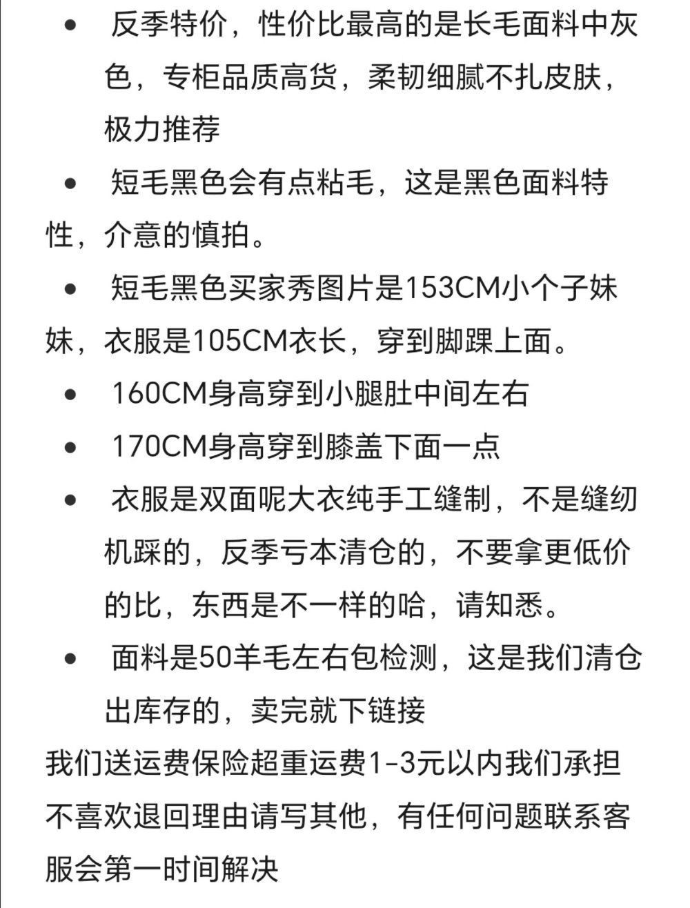 颜色 炭黑色(反季长毛面料琥珀纽扣),中灰色(反季长毛面料)