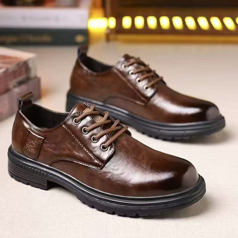休闲皮鞋2025新款男士皮鞋商务休闲男鞋厚底软面时尚英伦风马丁鞋