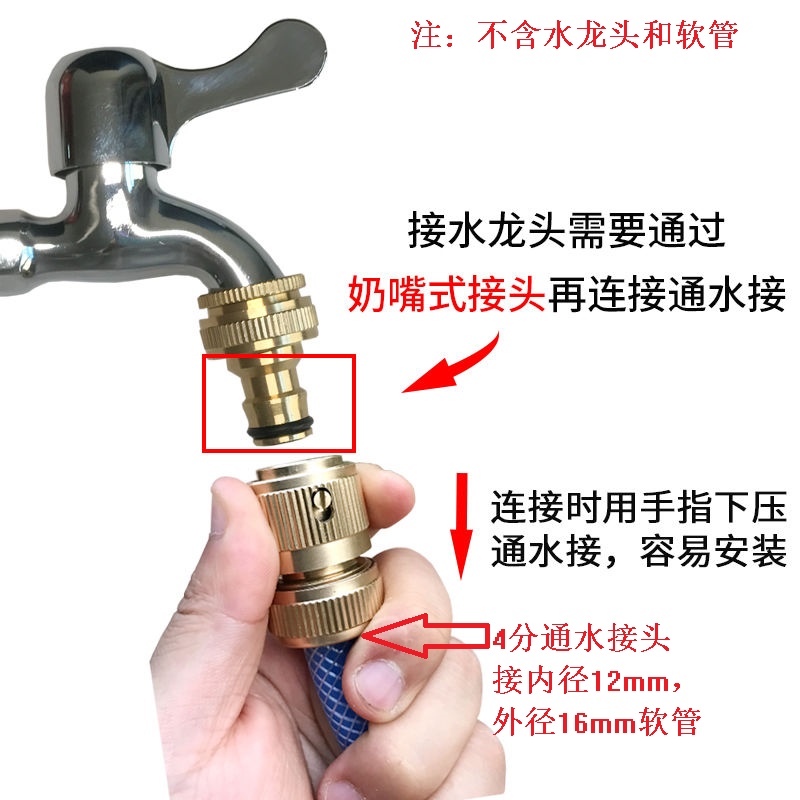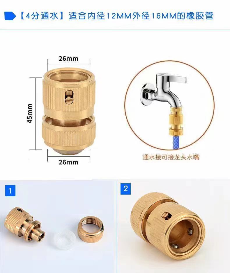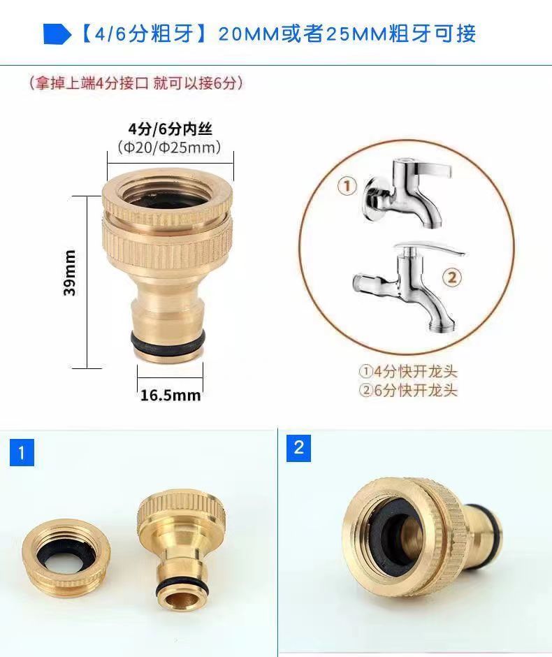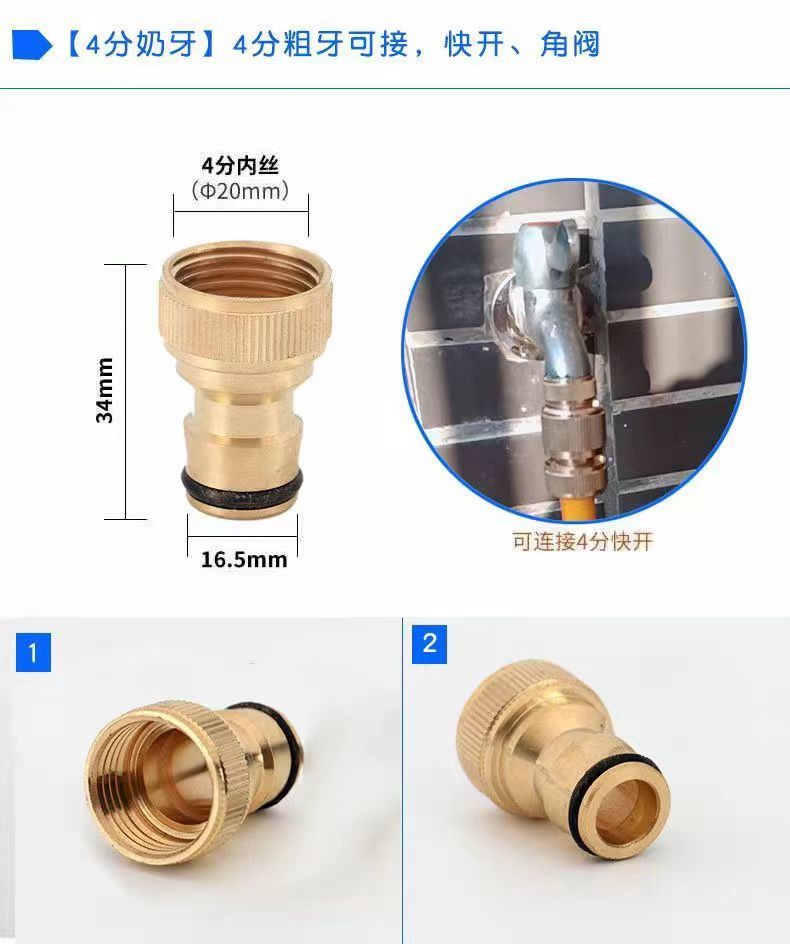 分分水龙头快接头四分六分水管全铜通水速接洗车软管铜奶嘴快