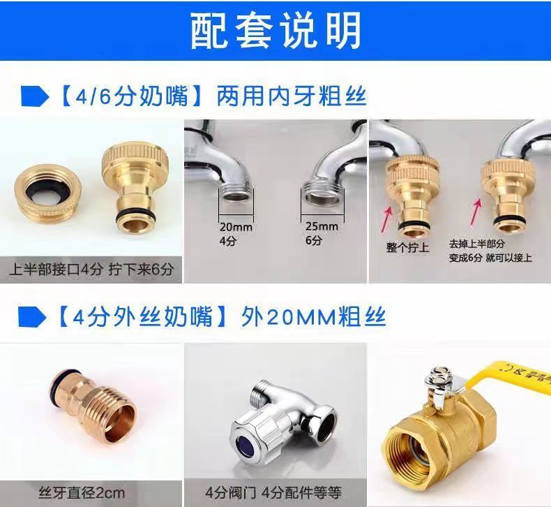 规格型号 【4分内牙】铜,【4分内牙+4分快速接头】铜,【4分内牙+2个4分快速接头】铜,【4分水管快接】铜,【4 6分内牙】铜,【4 6分内牙+4分快速接头】铜,【4 6分内牙+2个4分快速接头】铜,【台盆接细牙】铜,【台盆接细牙+4分快速接头】铜,【台盆接细牙+2个4分快速接头】铜,【多功能八爪+4分内牙】铜,【锁管式:4分洗衣机水龙头快接】,【卡箍式:4分洗衣机水龙头快接】,【4 6分内牙+5分快速接头】铜,【4 6分内牙+6分快速接头】铜,【台盆接细牙+5分快速接头】铜,【台盆接细牙+6分快速接头】铜,【5分快速接头】铜,【6分快速接头】铜