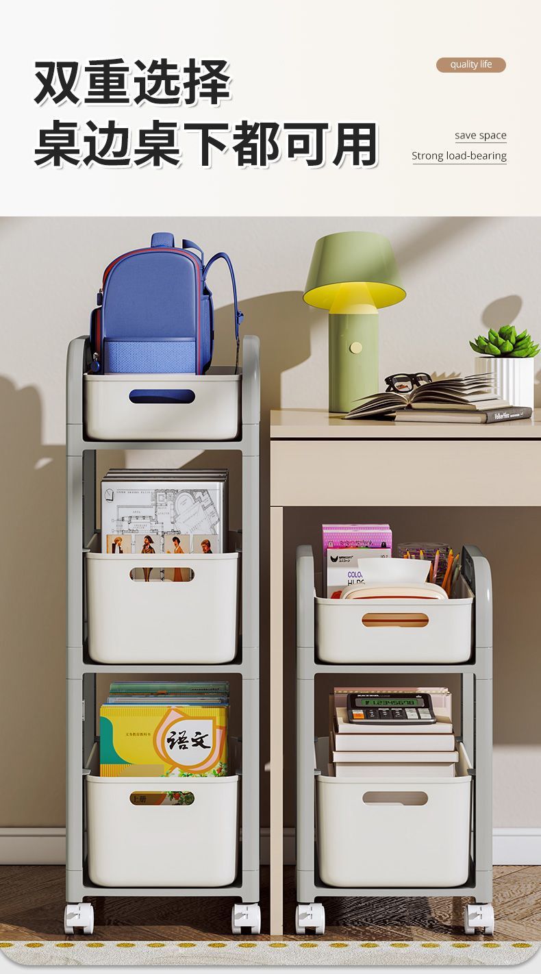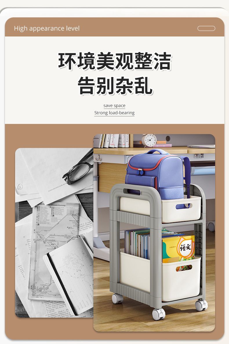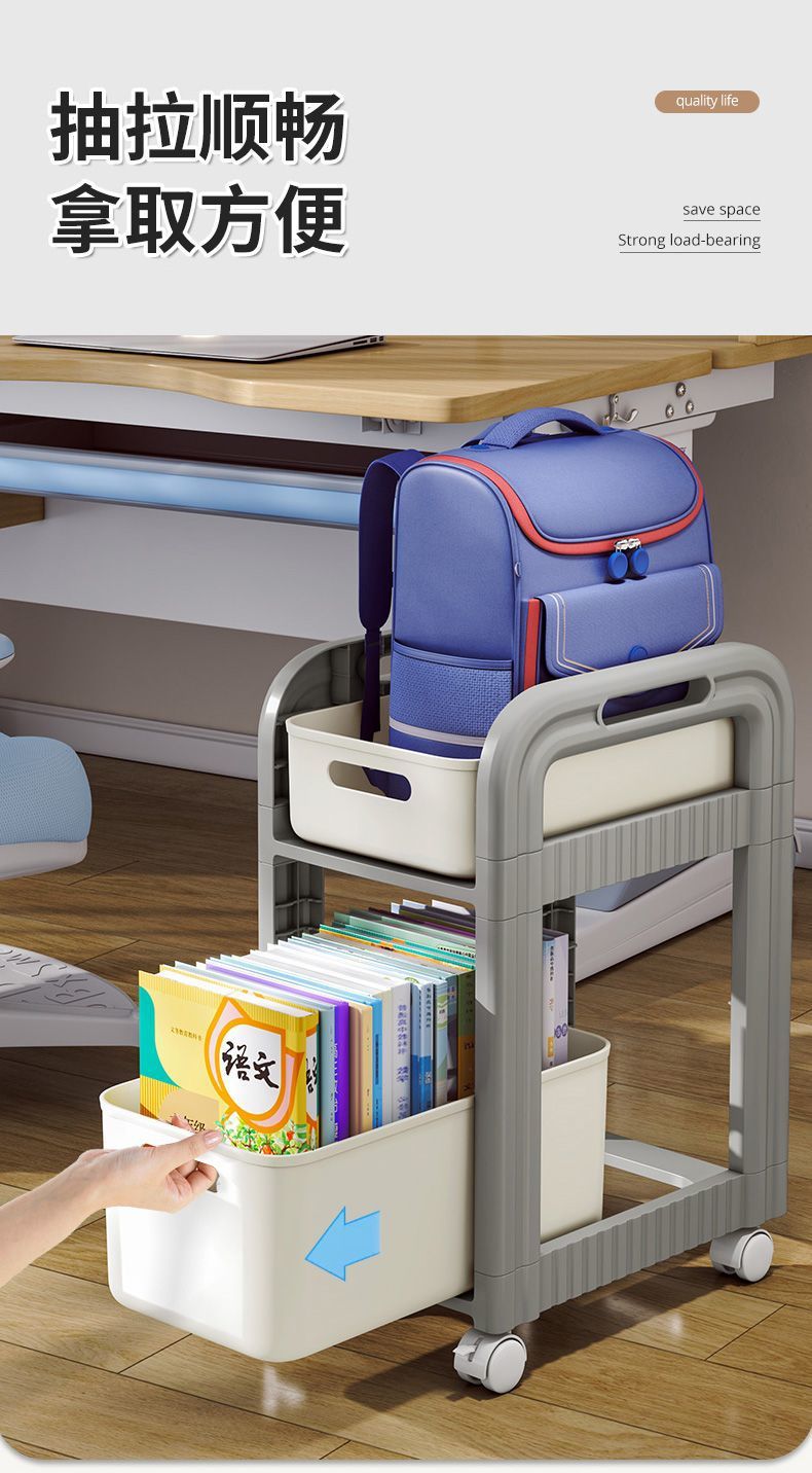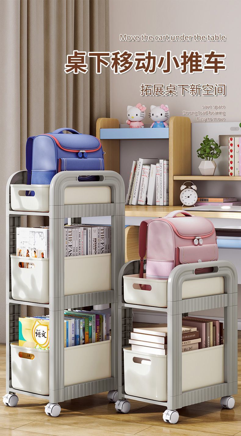 静音书包置物架可移动小推车书本收纳架神器家用放书包桌下滑轮柜