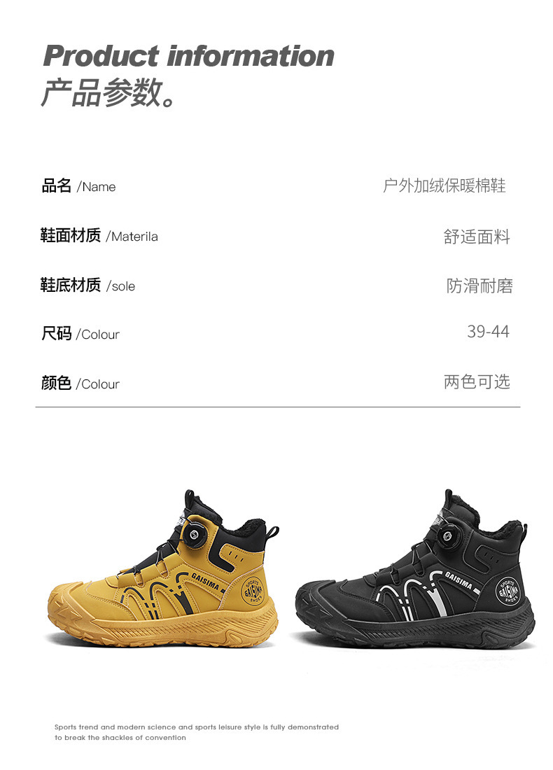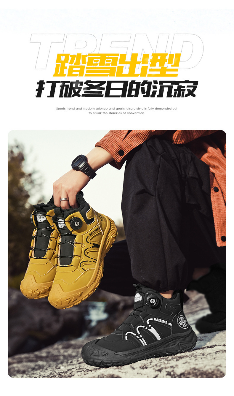レジャー運動靴綿靴冬の高さはベルベットの保温回転ボタンの戸外工装靴の新型ファッション男子靴である
