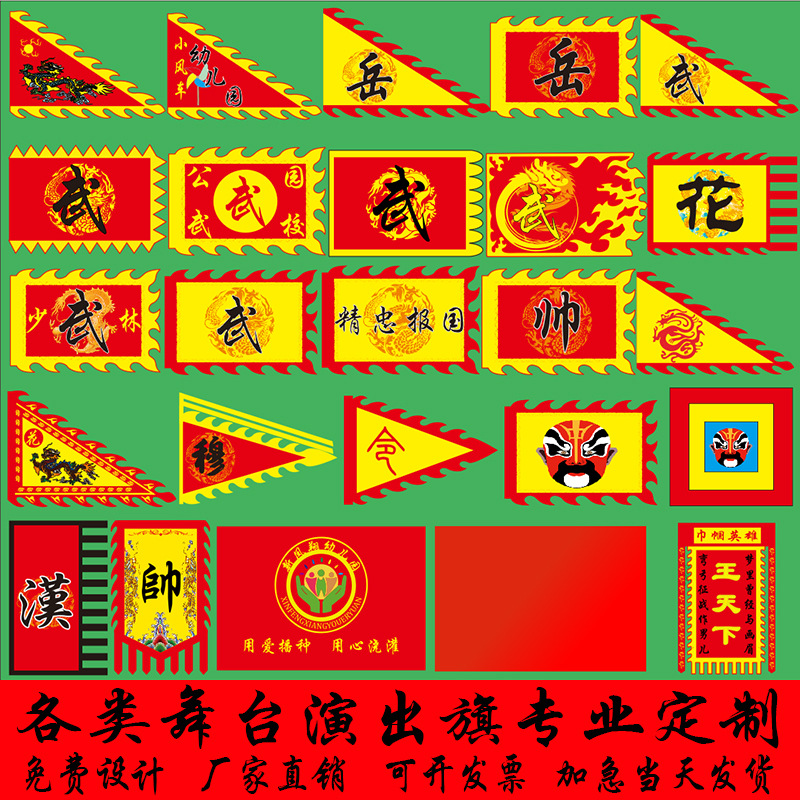 Chuangyao 武道パフォーマンスフラッグ学校キャンパスパフォーマンス小道具京劇フェイシャルフラッグ岳字旗グループフラッグチームフラッグアンティークフラッグ