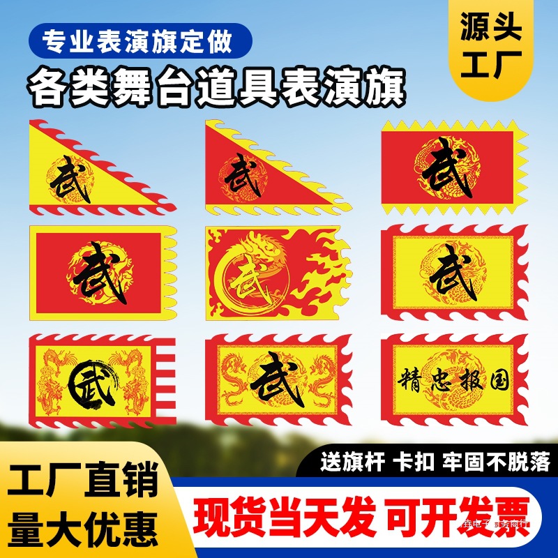 Chuangyao 武道パフォーマンスフラッグ パフォーマンス小道具フラッグ トリケラトプスフラッグ シャオシフラッグ ユエフラッグ 戦旗 アンティークフラッグ