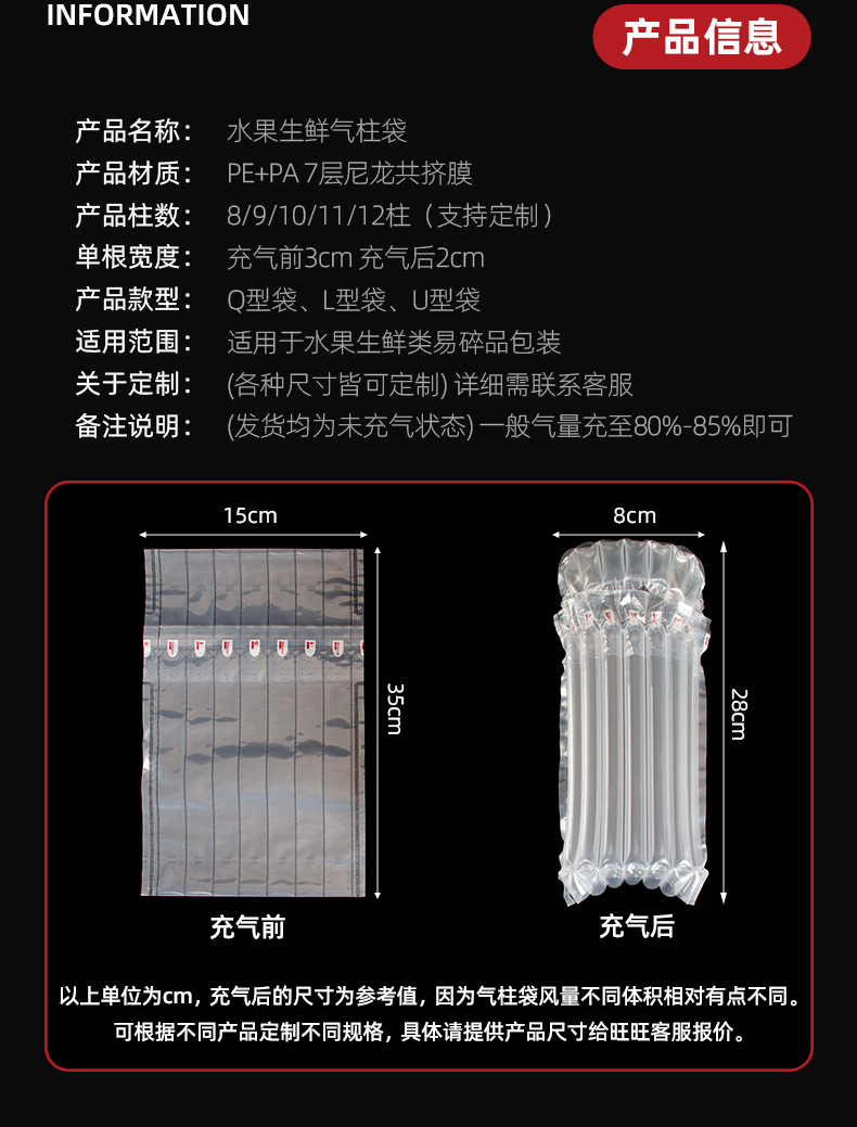 源头工厂 防震缓冲西瓜哈密瓜水果充气袋 物流快递打包防摔气柱袋