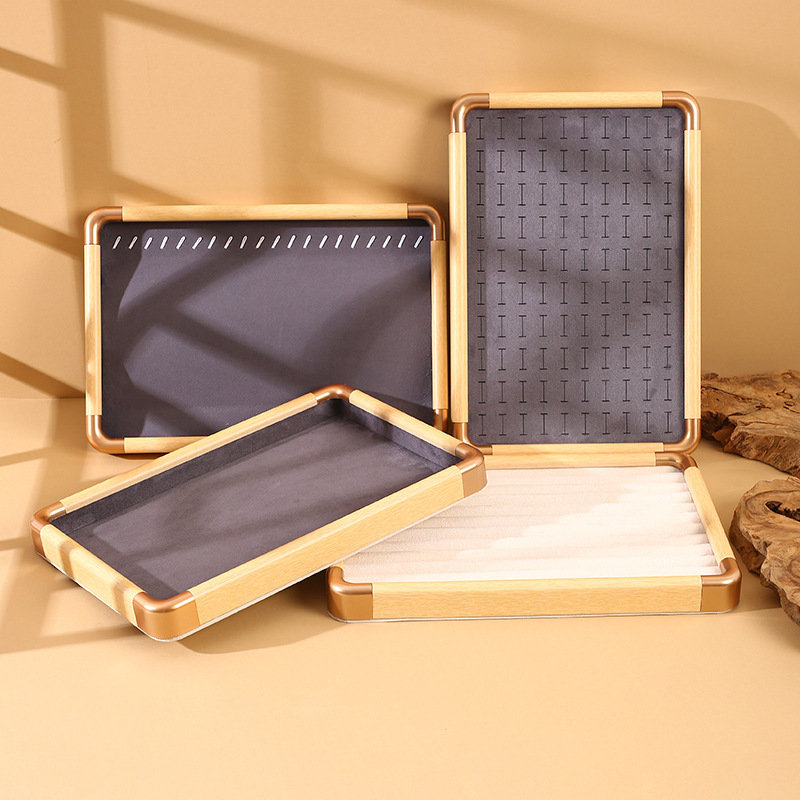 無垢材ジュエリートレイ、指輪トレイ、ネックレス、イヤリング収納ボックス、ブレスレット展示用見本トレイ
