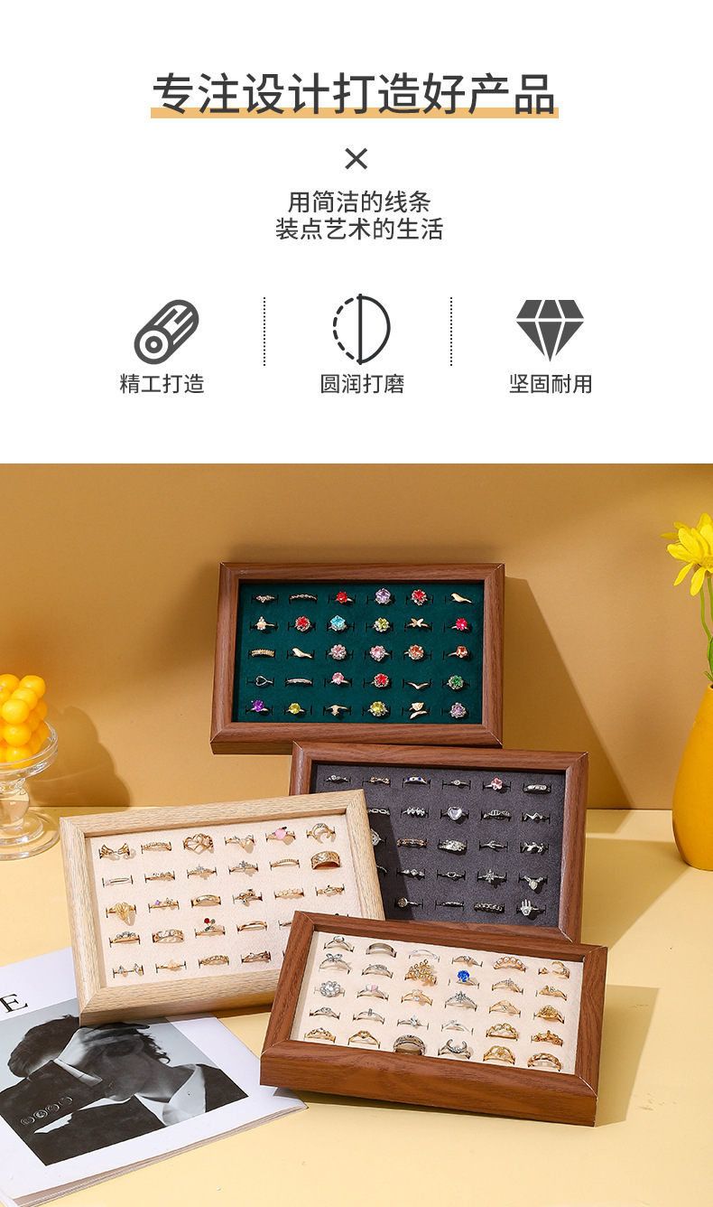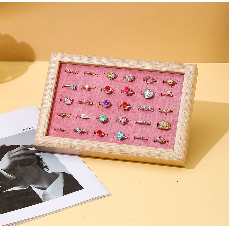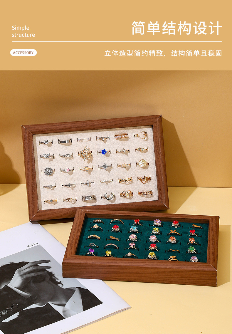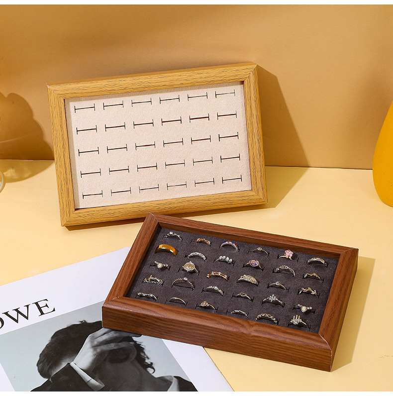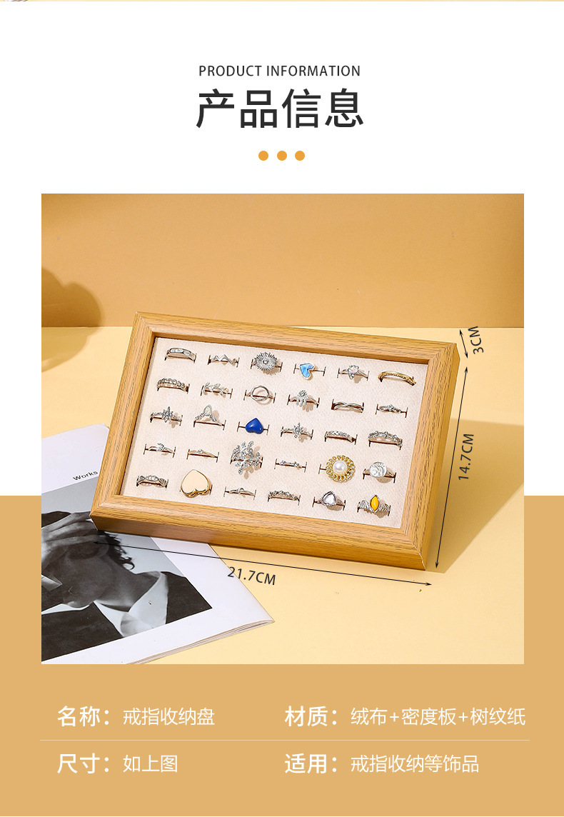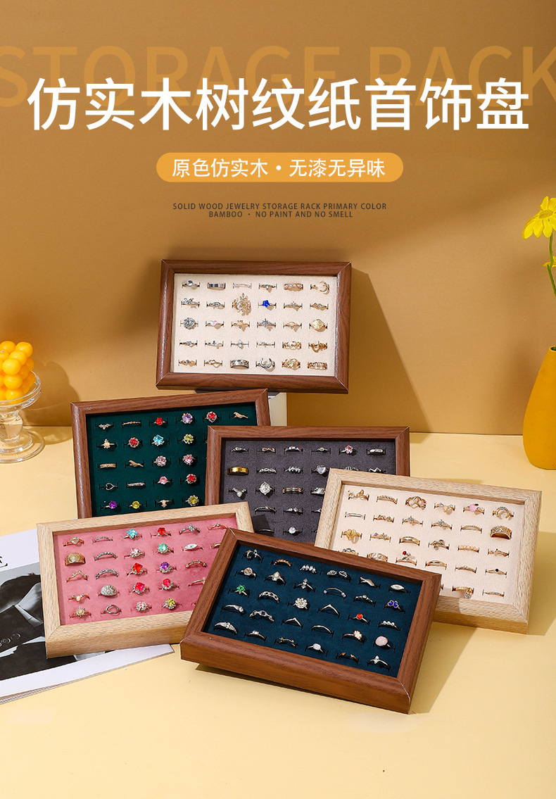 リング収納ボックス家庭用アクセサリー展示枠軽豪華指輪収納展示盤木目フランネルジュエリートレイ