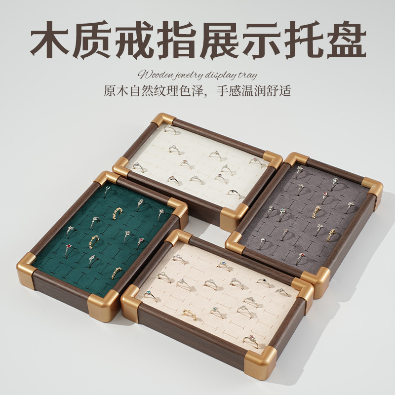 首饰架戒指耳钉展示盘戒指挑选盘胡桃色盘珠宝收纳看货托盘展示