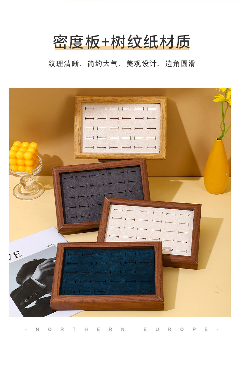 首饰架戒指耳钉挑选盘胡桃色展示盘珠宝收纳看货首饰托盘展示道具