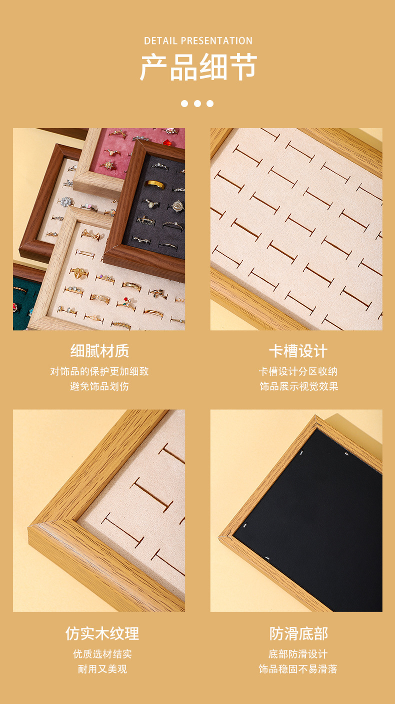 首饰盘实木相框戒指盘戒指挑选盘珠宝收纳看货展示道具胡桃色盘