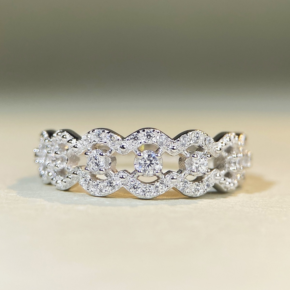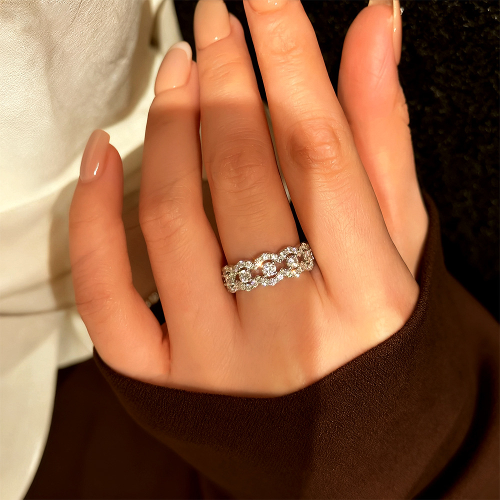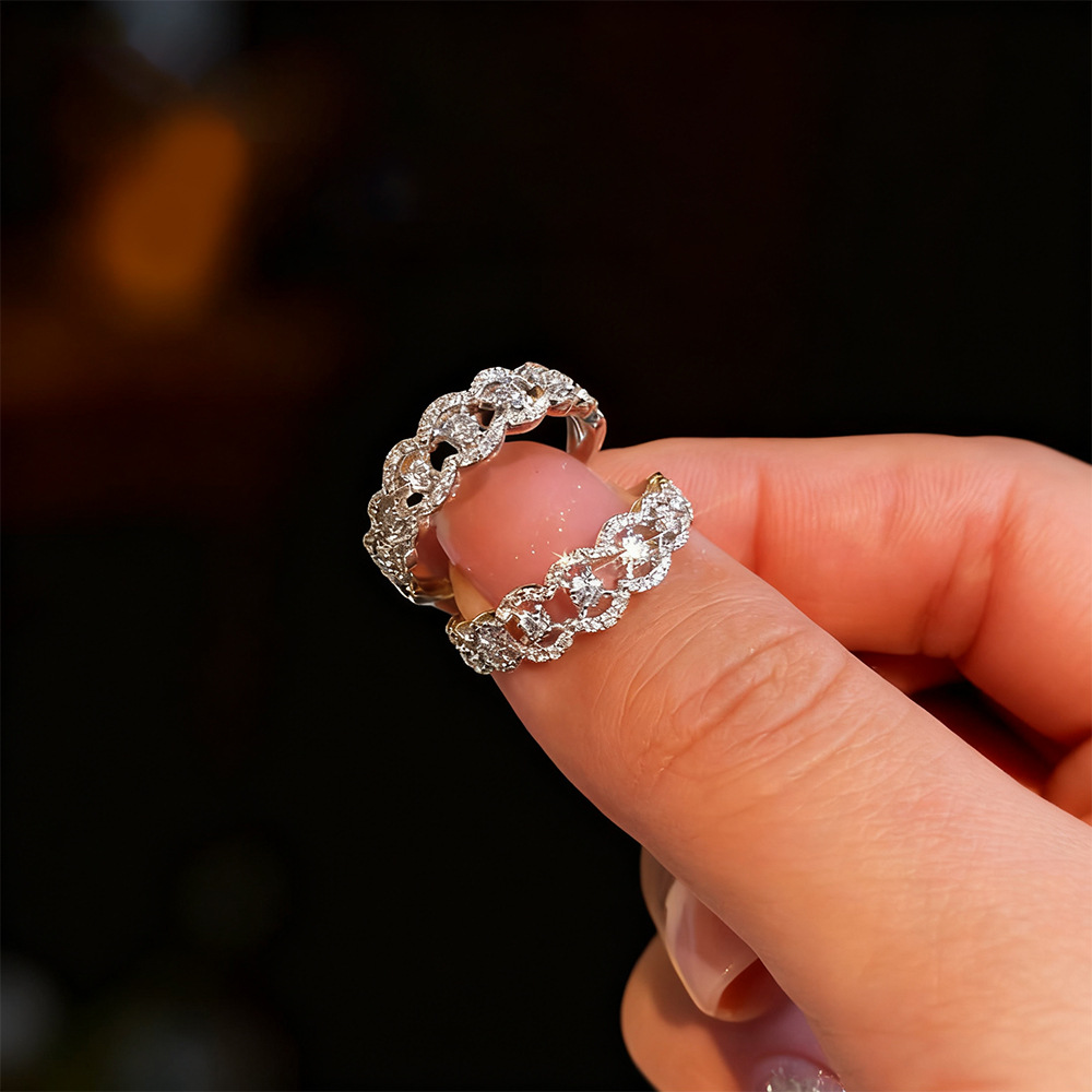 クロスボーダー新作925シルバー全面装飾レースリング女性用シンプルハンドジュエリー重ね付けリングおしゃれ高級感