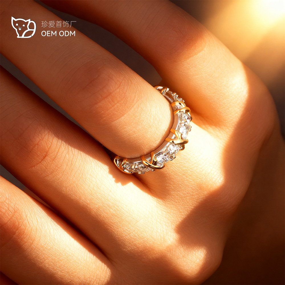 跨境莫桑石纯银镂空蕾丝排戒女简约小众手饰叠戴戒指时尚高级批发
