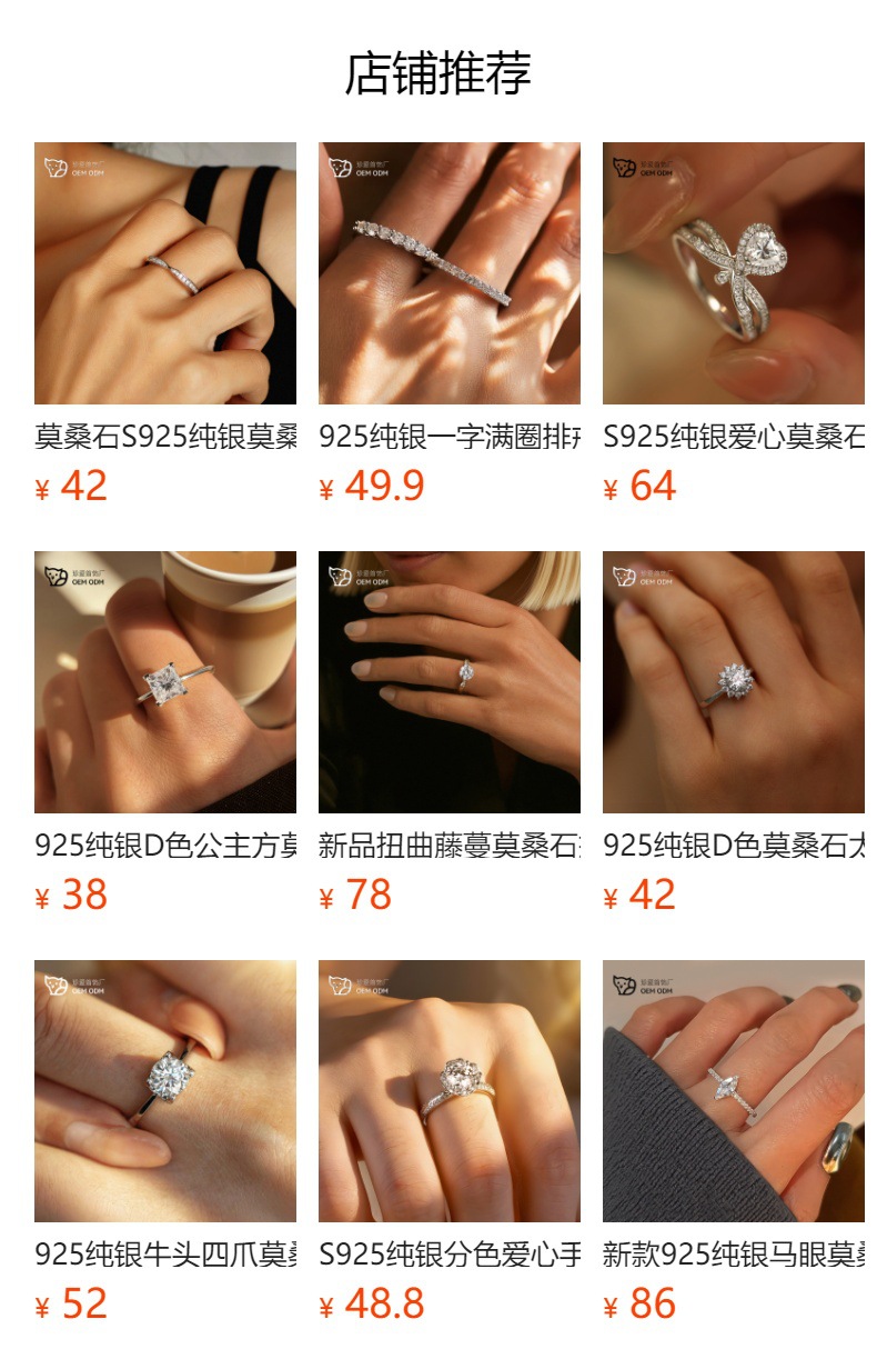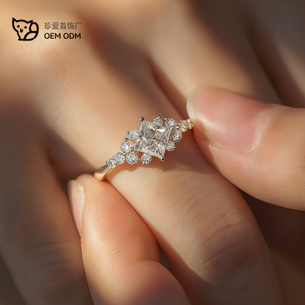 2025爆款跨境小红书热销轻奢爆闪莫桑石公主方925纯银戒指女定制
