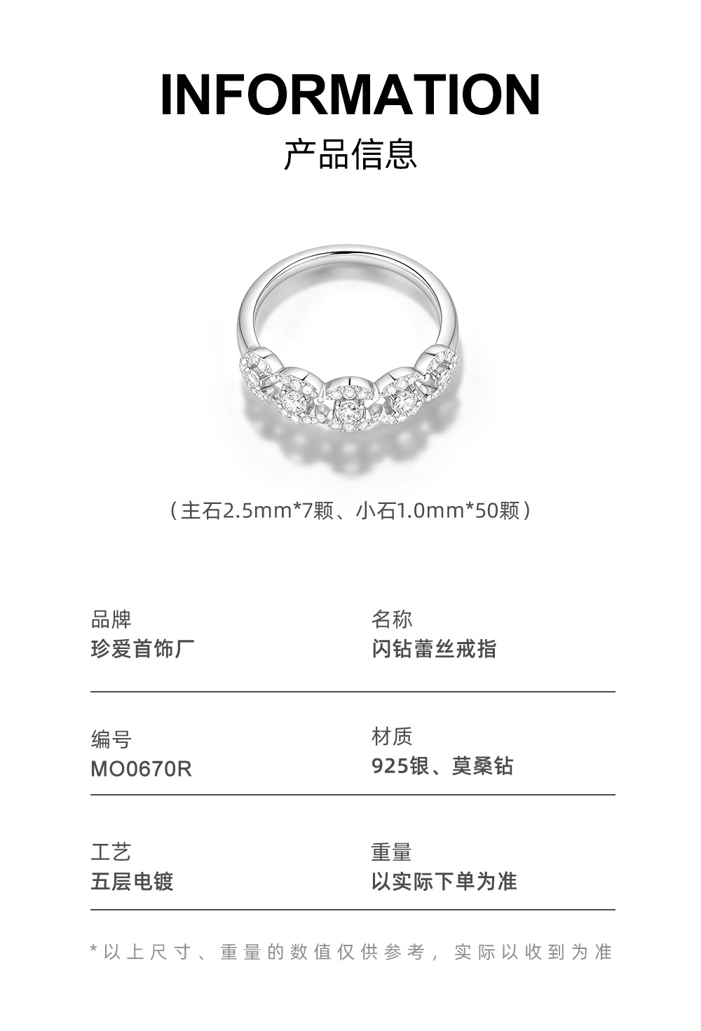 S925银莫桑钻戒指女蕾丝排戒镀白金色简约时尚小红书跨境加工批发
