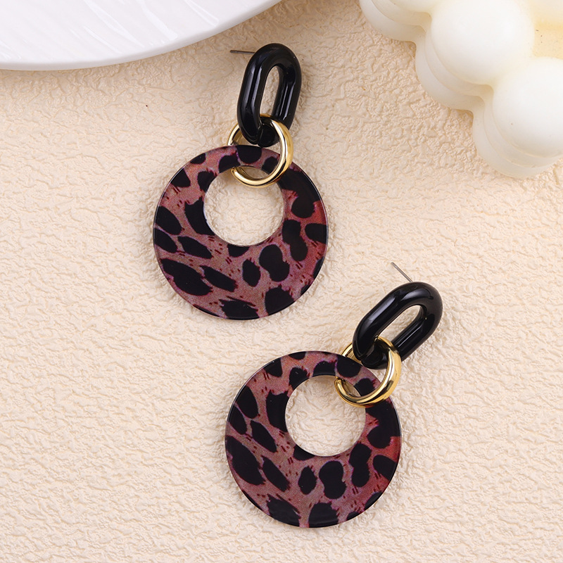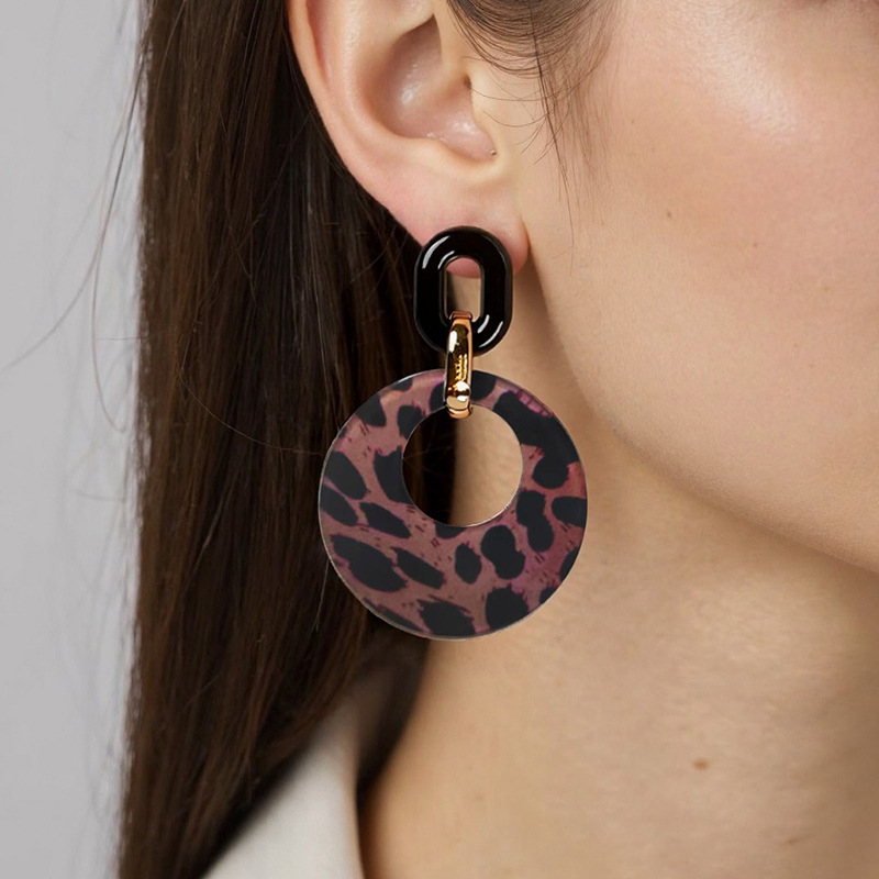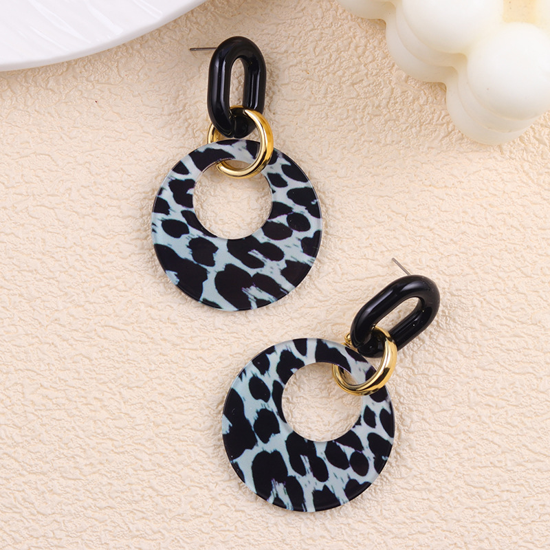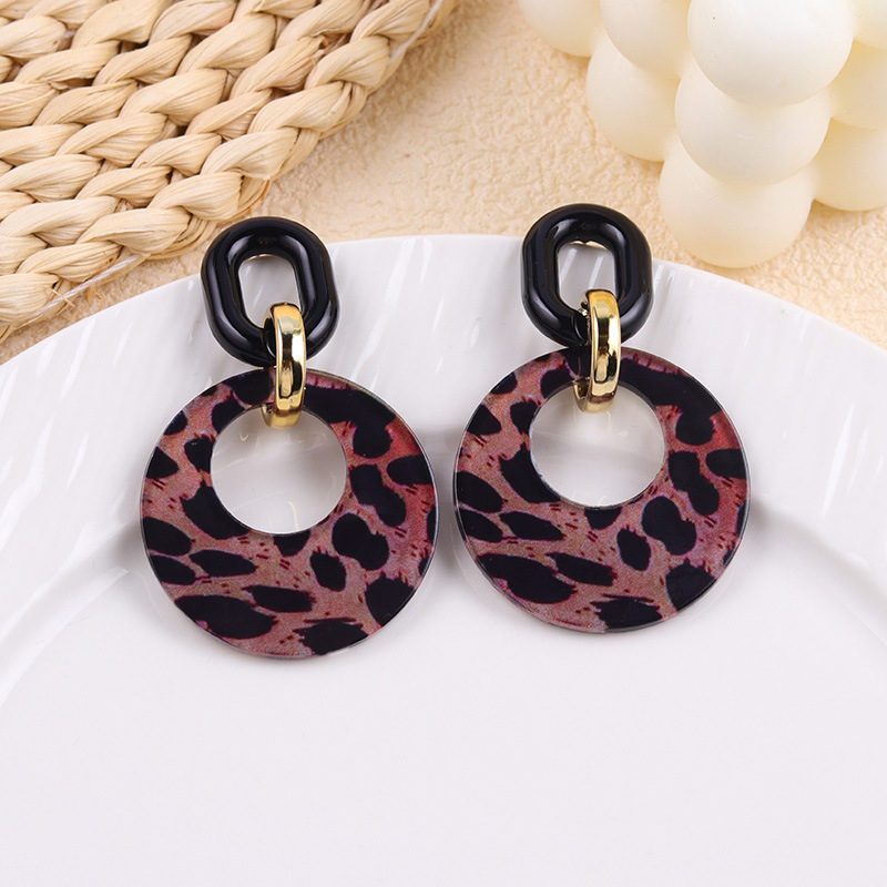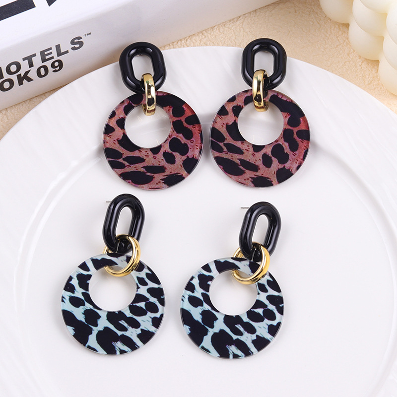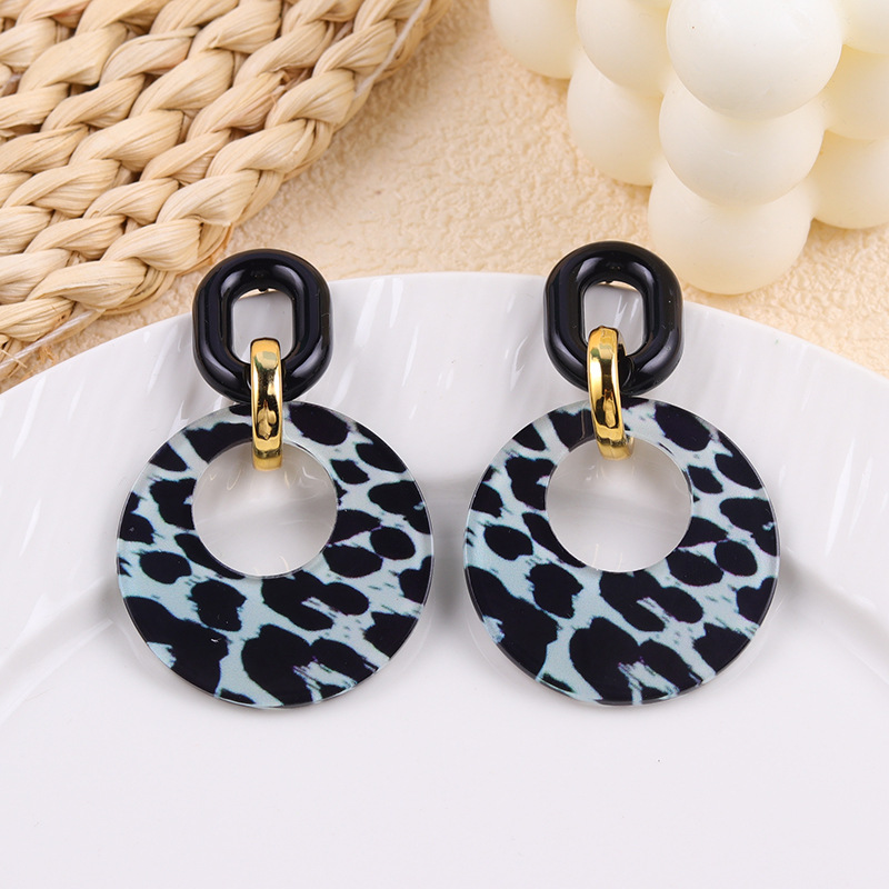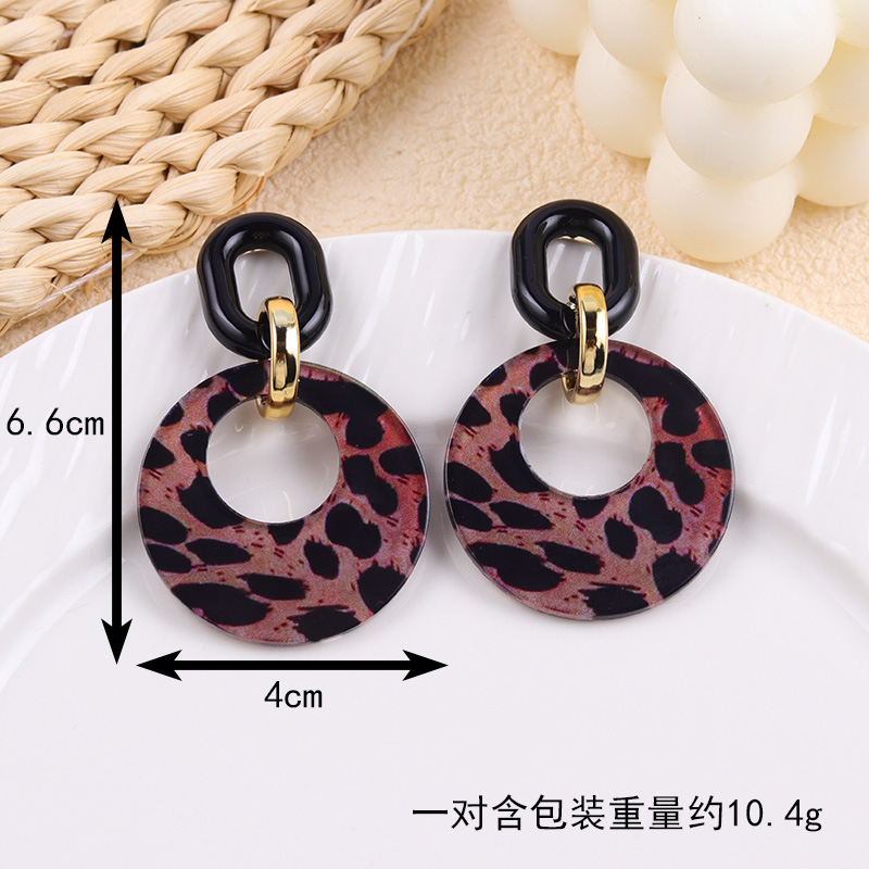 欧美跨境个性豹纹耳钉圆形镂空几何亚克力耳环高级感耳坠耳饰品女