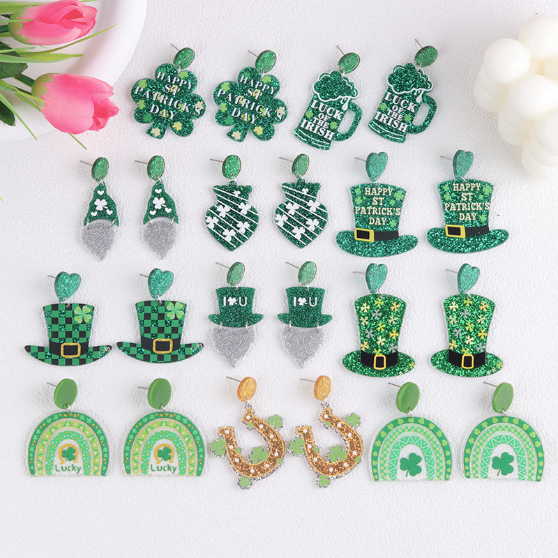 聖パトリック国境を越えた新しいクローバー帽イヤリングイヤリングアクセサリーシンプルなアルファベットビールピアス個性イヤリング