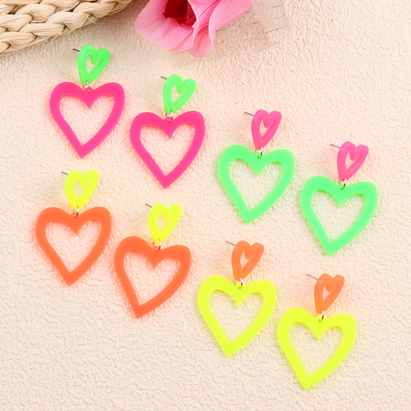 跨境情人节耳钉荧光色镂空爱心亚克力耳环时尚个性耳坠耳饰品女
