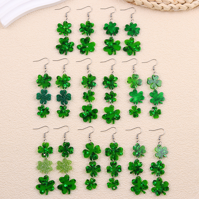 圣帕特里克啤酒节日耳钉三叶草四叶草亚克力耳环个性耳坠耳饰品女