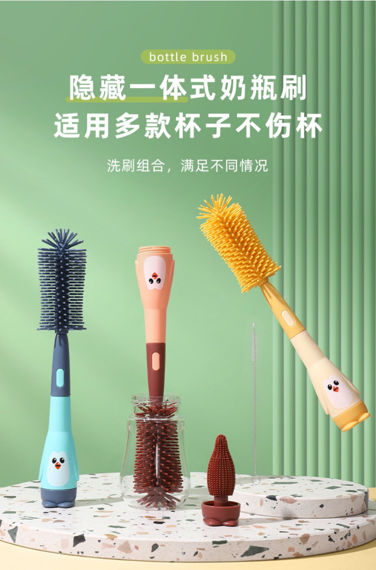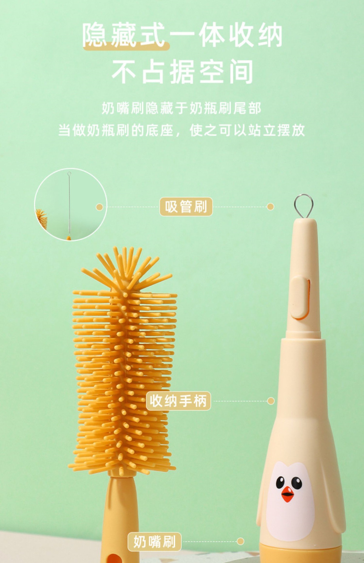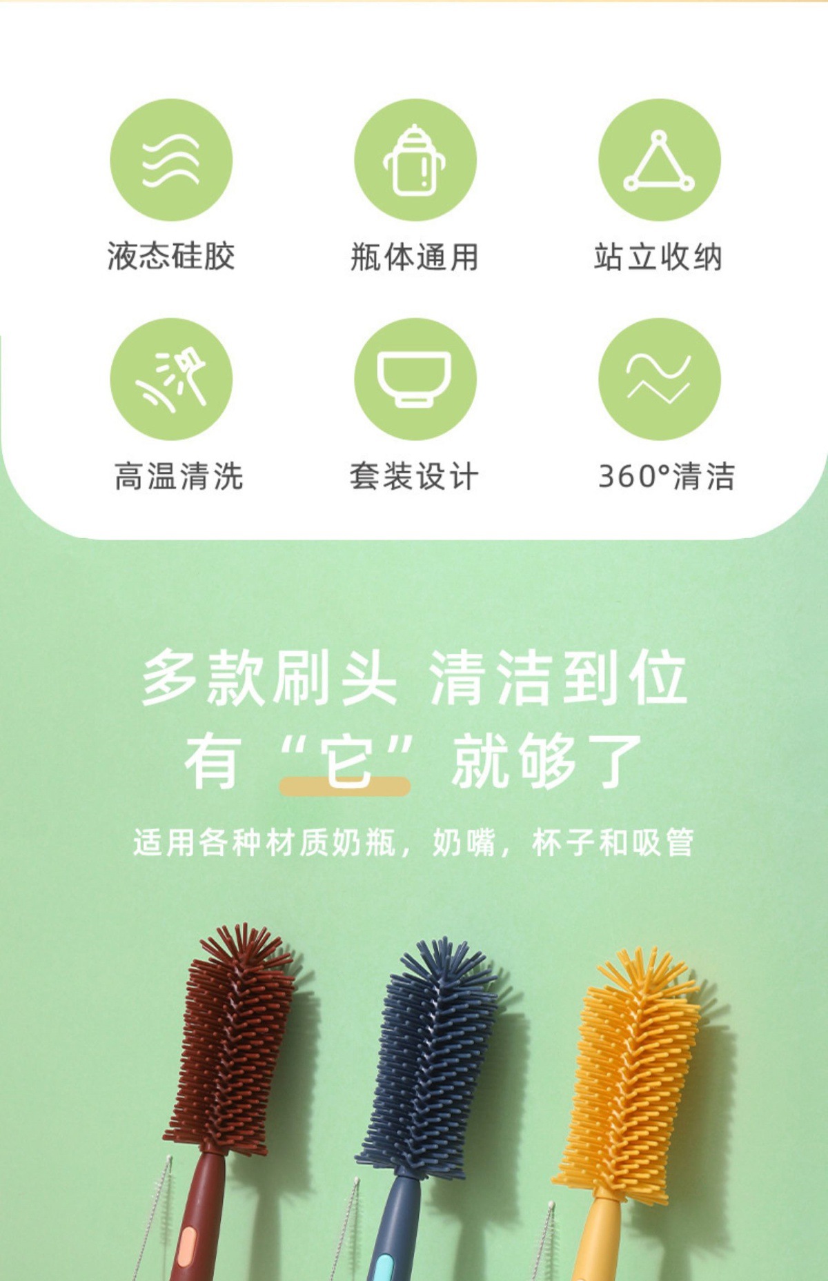 硅胶清洁清洗洗奶瓶刷奶嘴刷奶瓶吸管刷细婴儿专用套装清洁刷便携