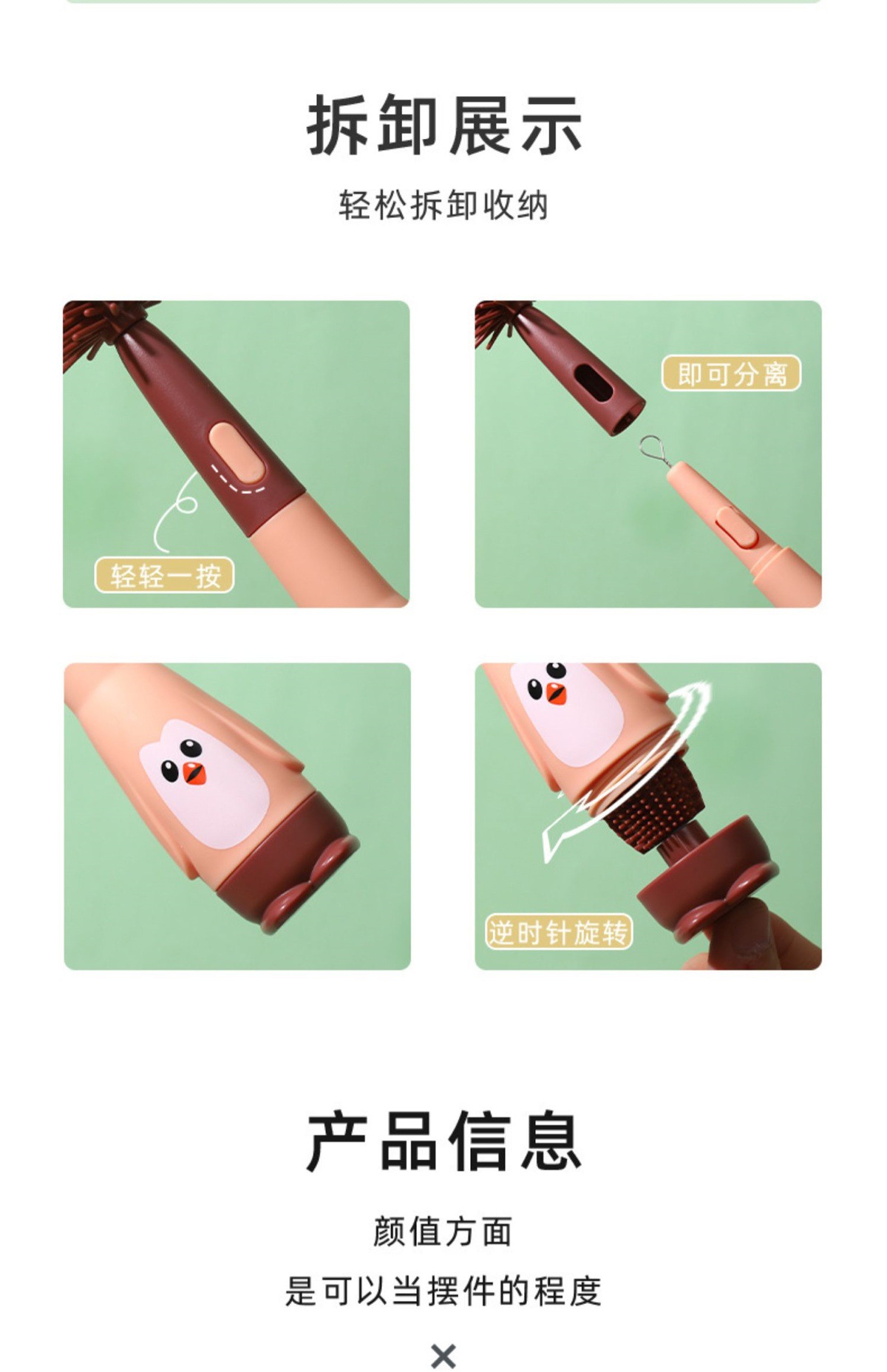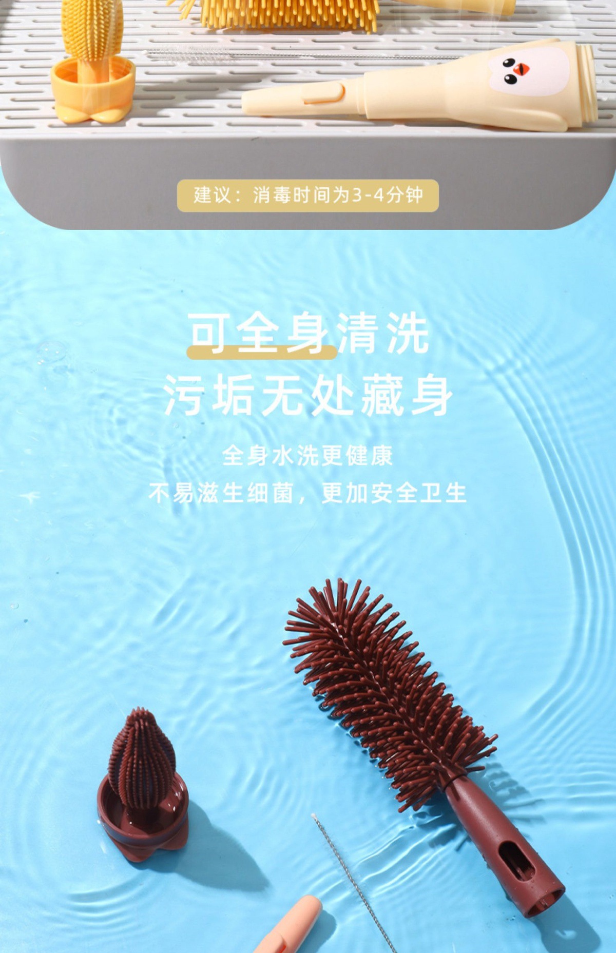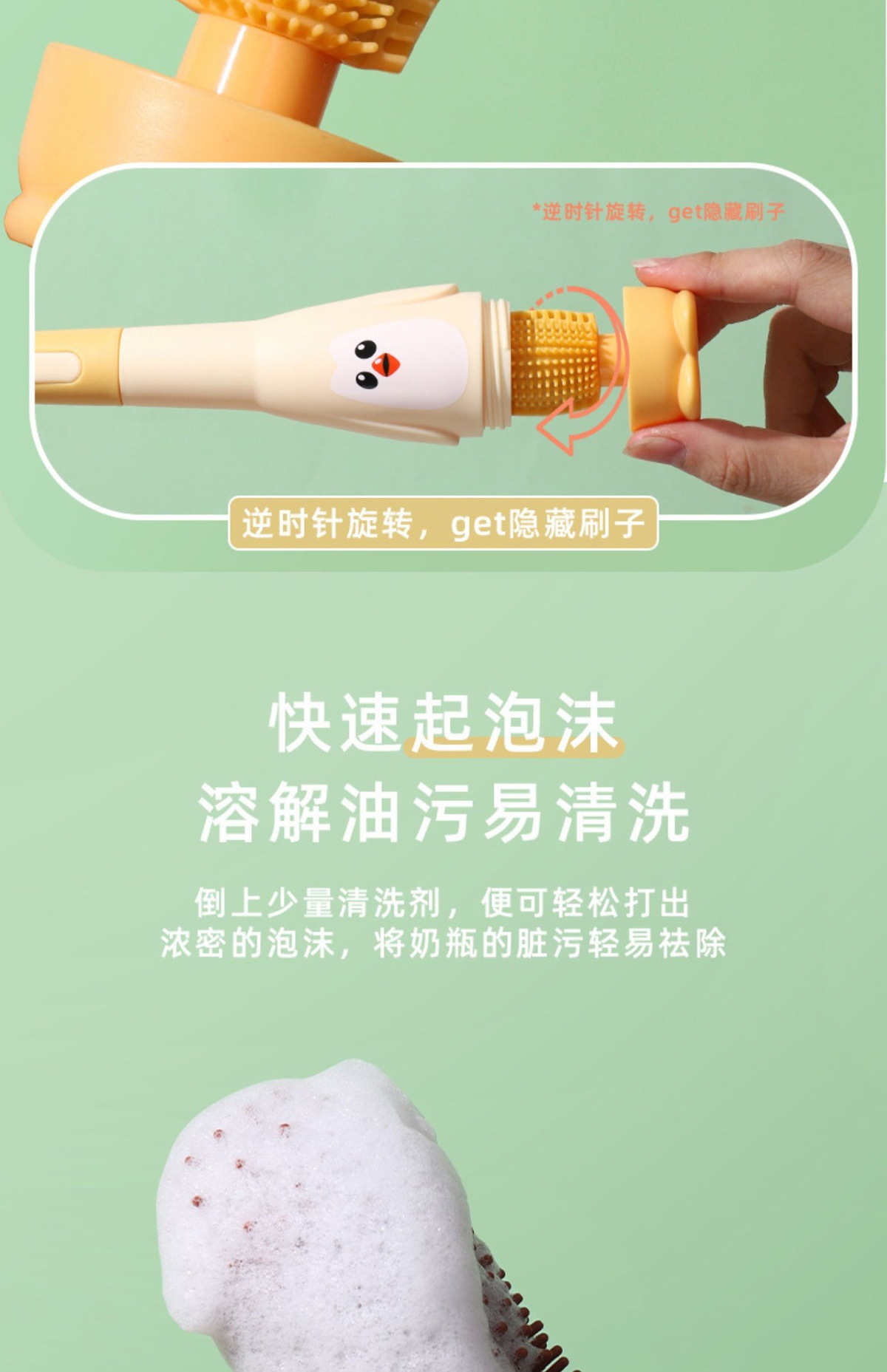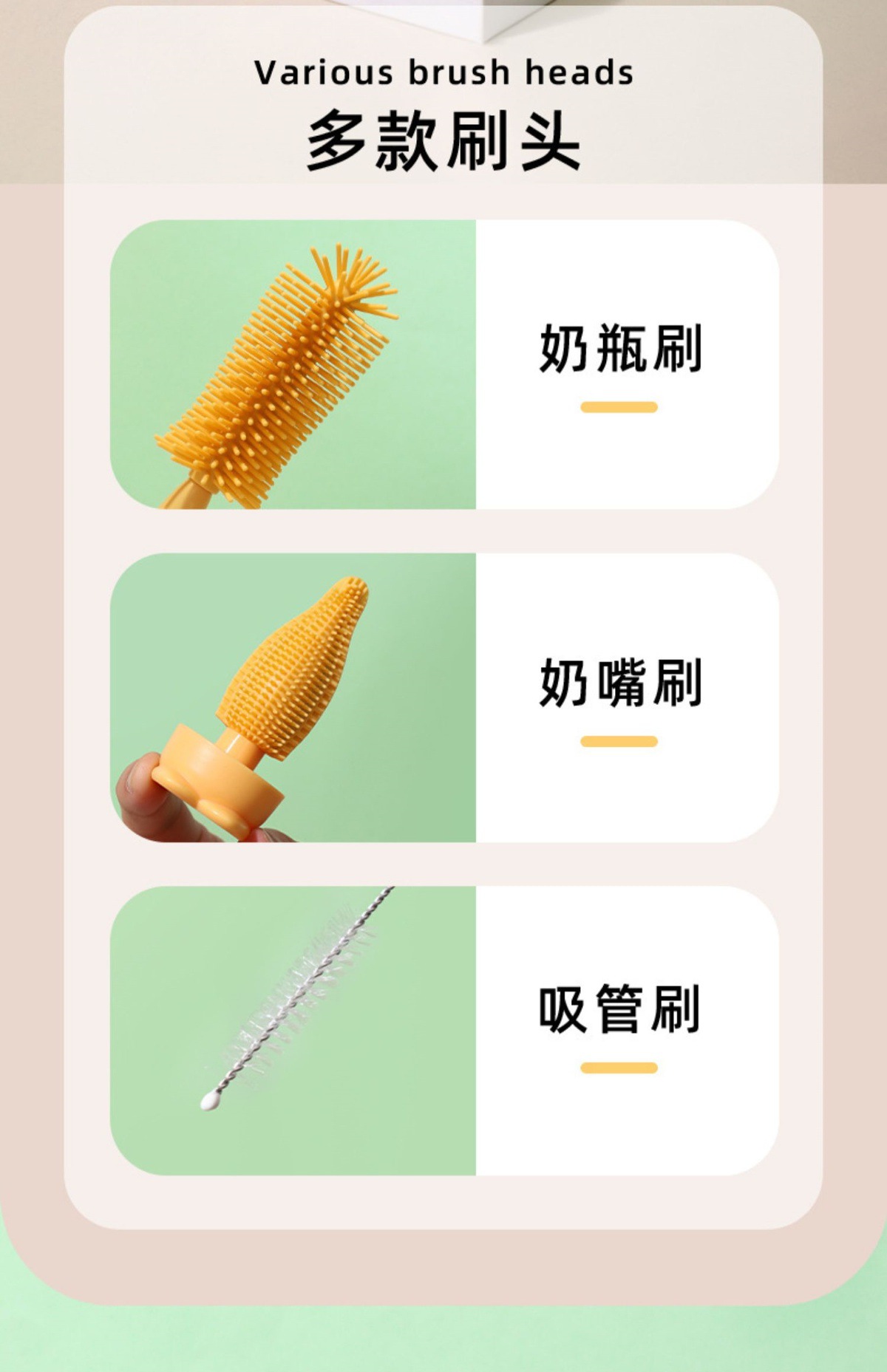 硅胶清洁清洗洗奶瓶刷奶嘴刷奶瓶吸管刷细婴儿专用套装清洁刷便携