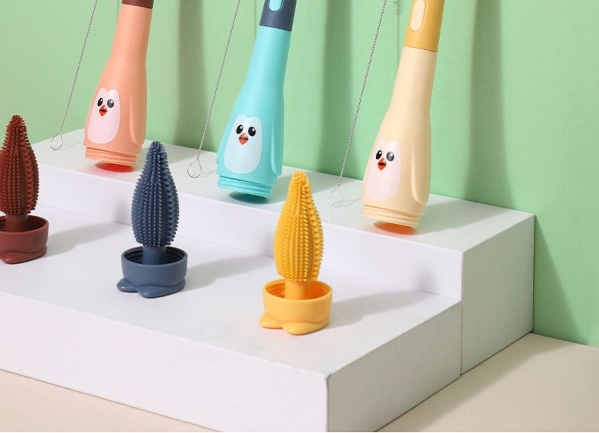 哺乳瓶洗浄ブラシ、新生児専用乳首・ストロー用シリコンブラシ、携帯用洗浄3in1セット