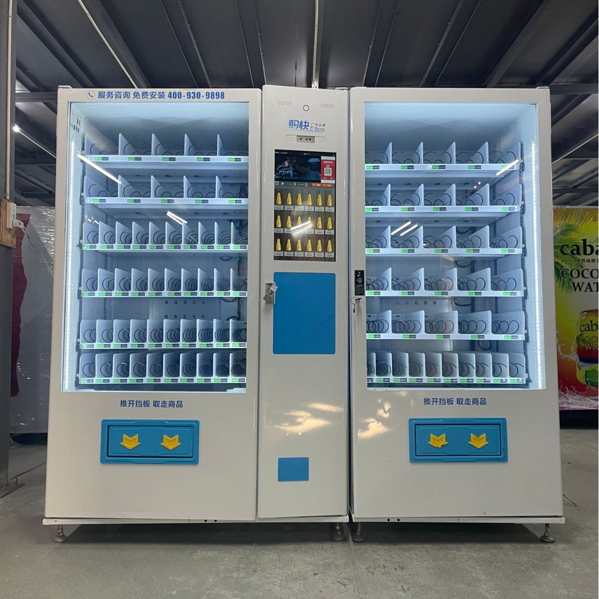 二手九成新自动扫码卖货售货柜一拖一智能触屏自助贩卖机厂家批发