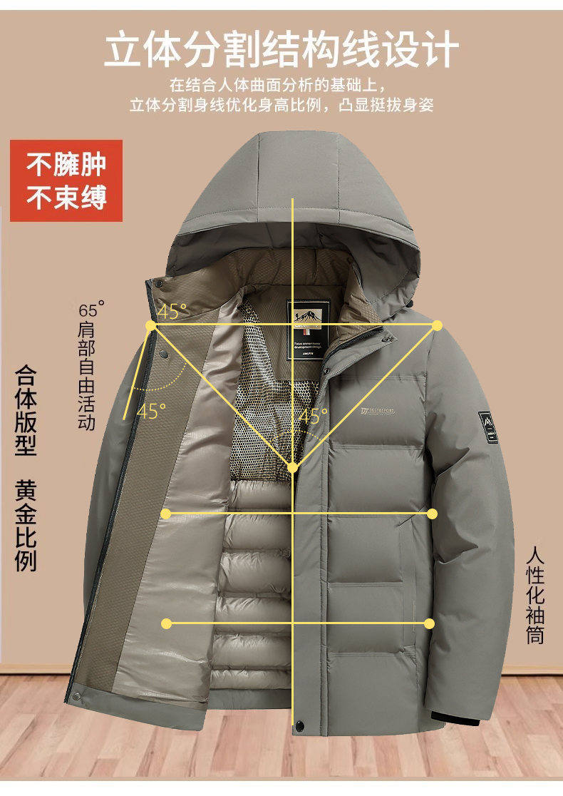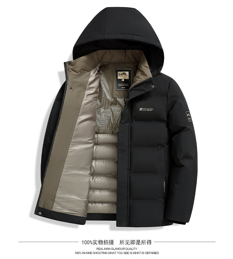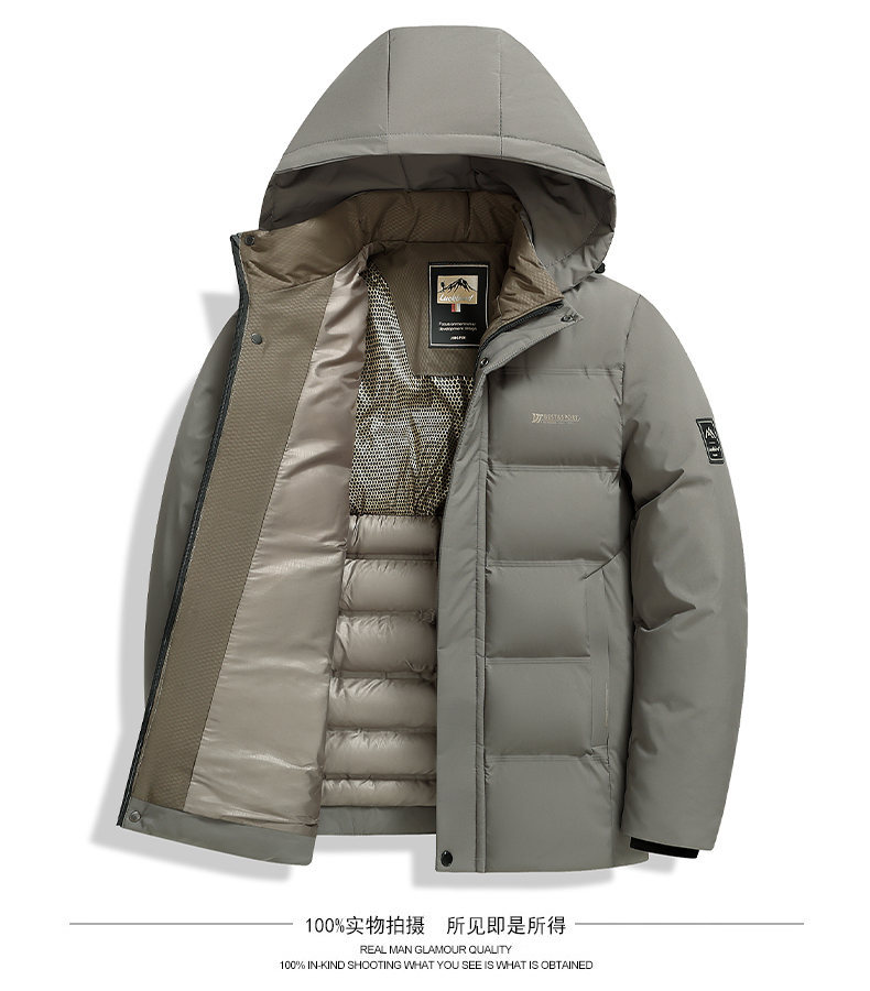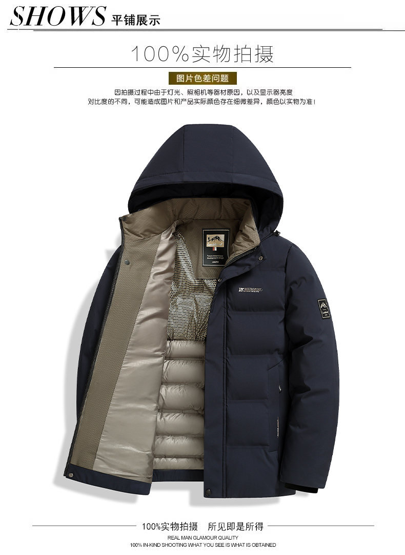 男性は帽子を脱いでダウンジャケットを厚くして、2024冬の新型紳士服中年の広版香港風ビジネスカジュアルコート
