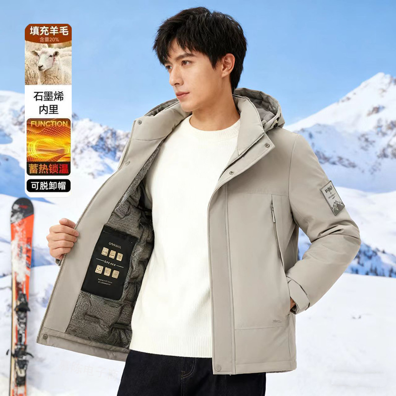 军旭25年冬季新款加绒加厚防寒保暖毛领抗静电石墨烯男装棉服