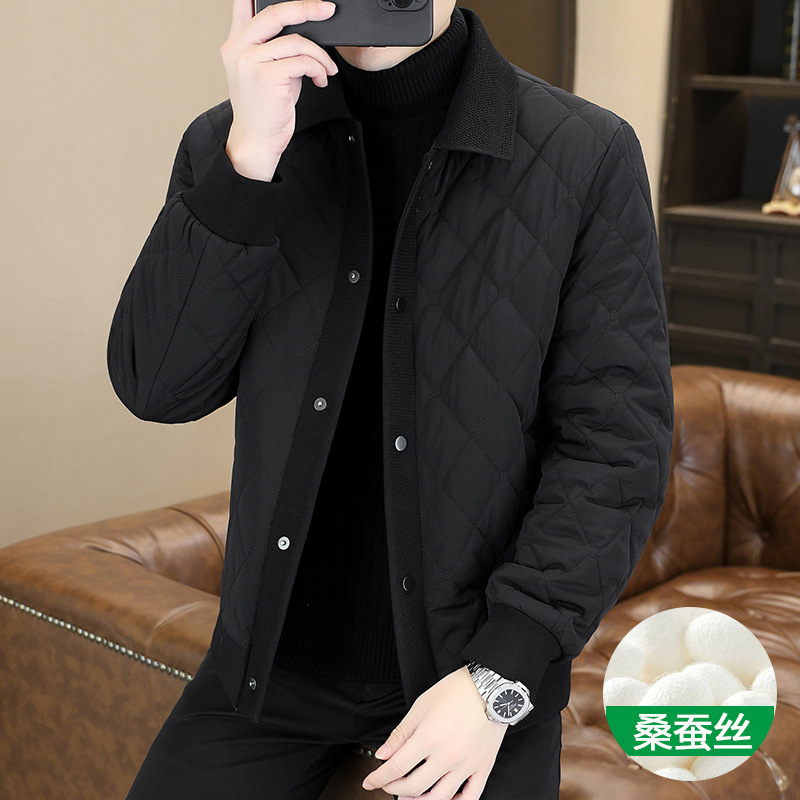 男士加厚桑蚕丝翻领棉衣2025冬季新款男装中青年休闲简约保暖棉服