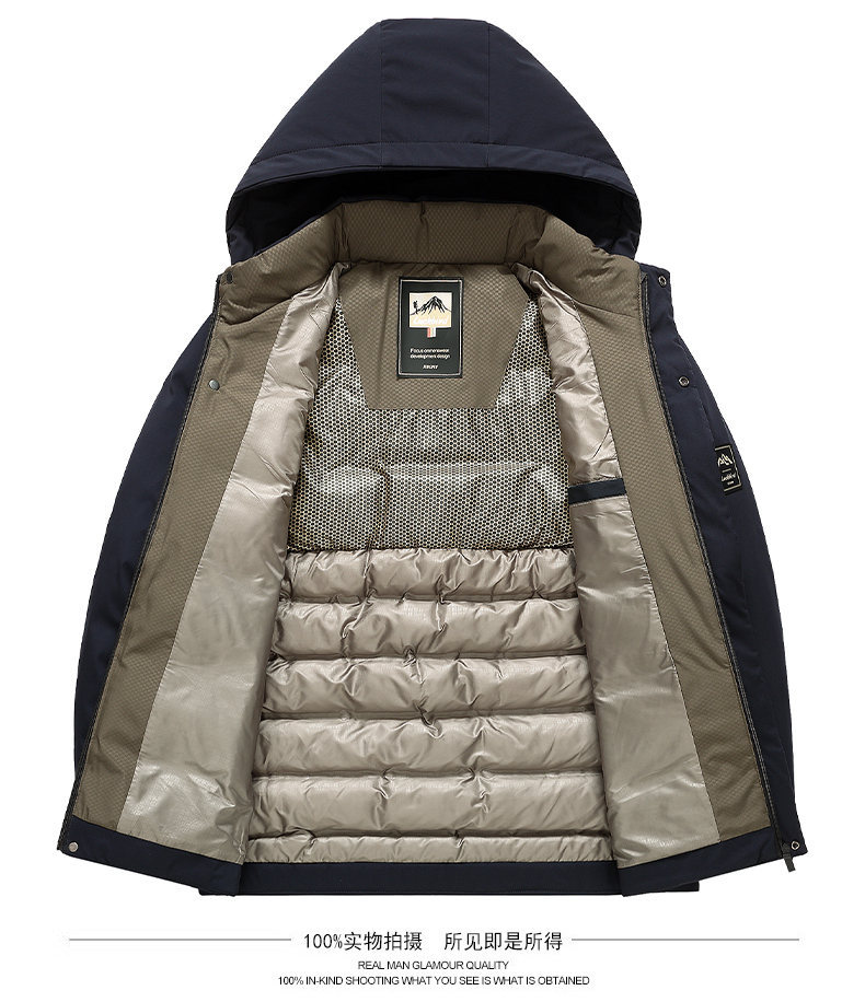 男性用取り外し可能なインナーライナー付き90グースダウンジャケット 冬用メンズ中年ビジネス暖かいお父さん用コート 防寒