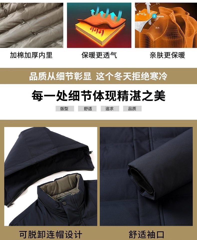 男士加厚可脱卸帽棉衣2025冬季新款男装中老年商务休闲爸爸装外套