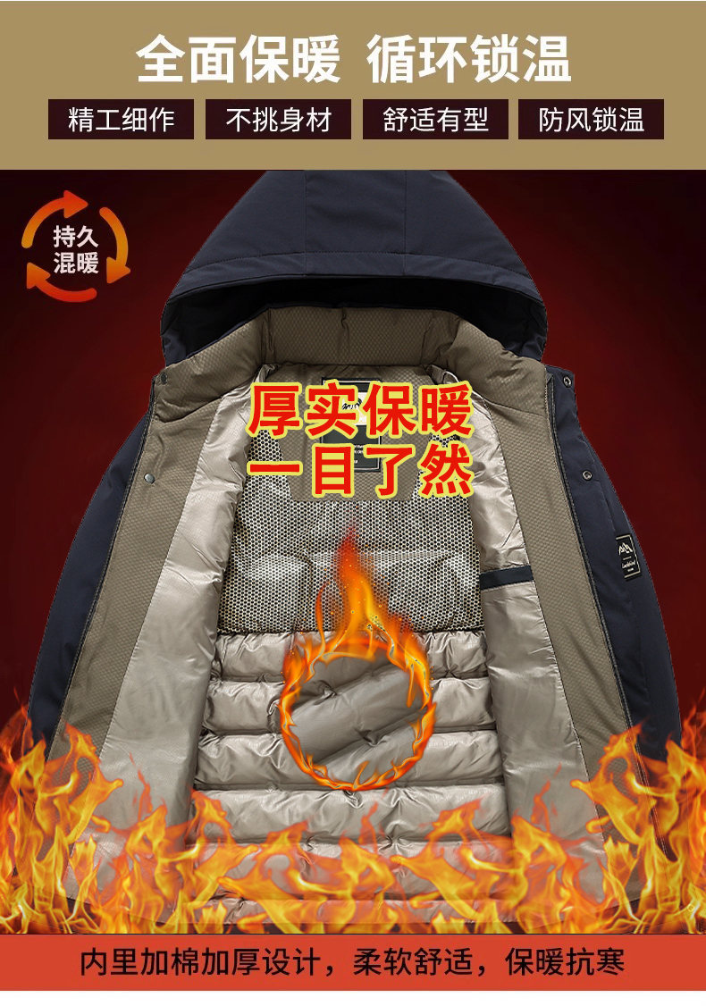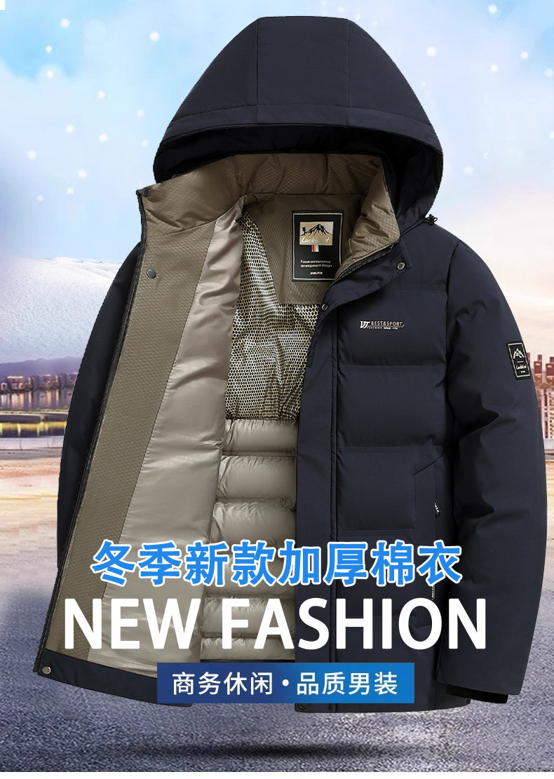 男士加厚连帽棉衣2025冬季新款男装中老年商务休闲爸爸装保暖外套