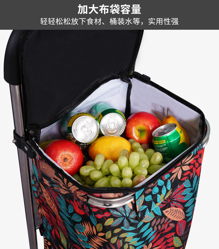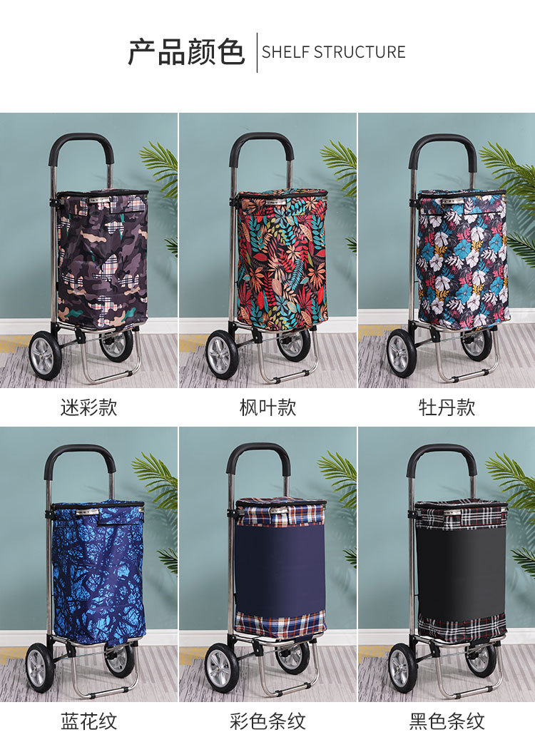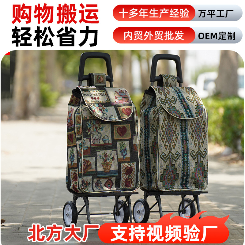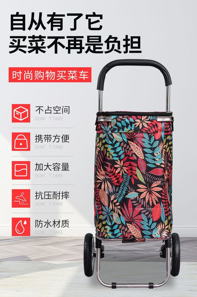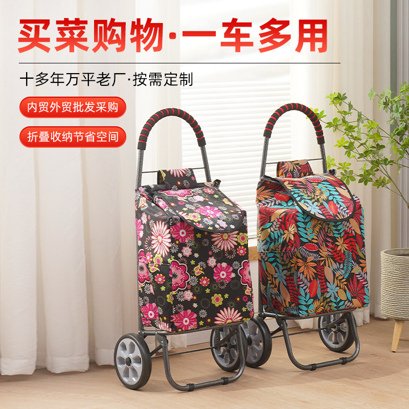 印花买菜车老年人家用超市购物手拉车便携式推车简易行李拉杆拖车