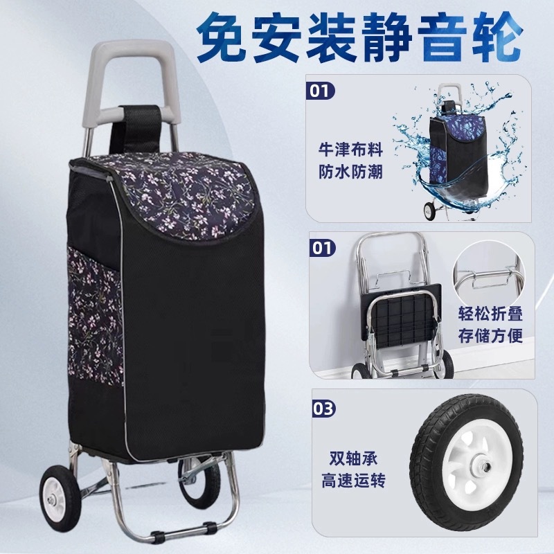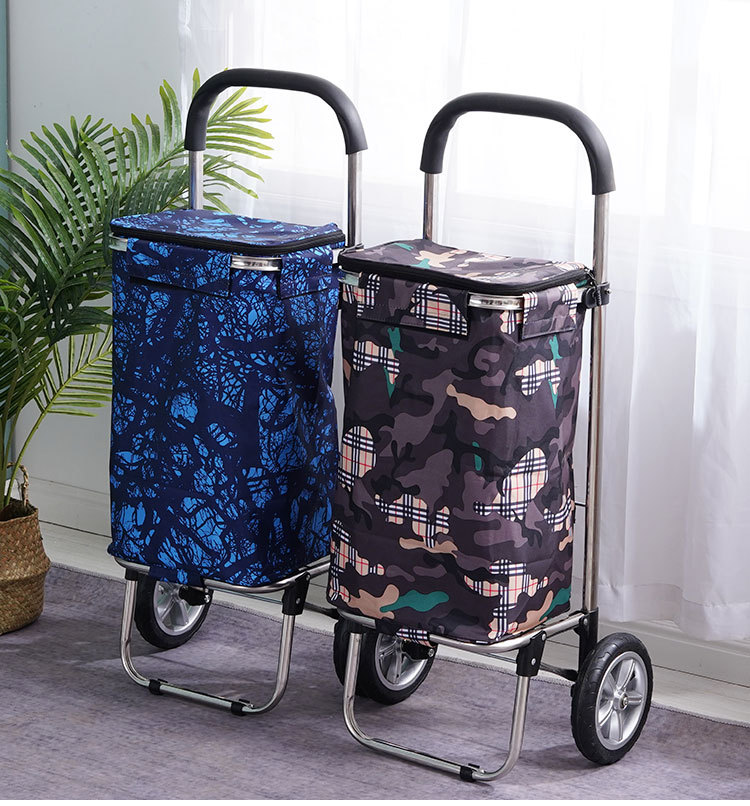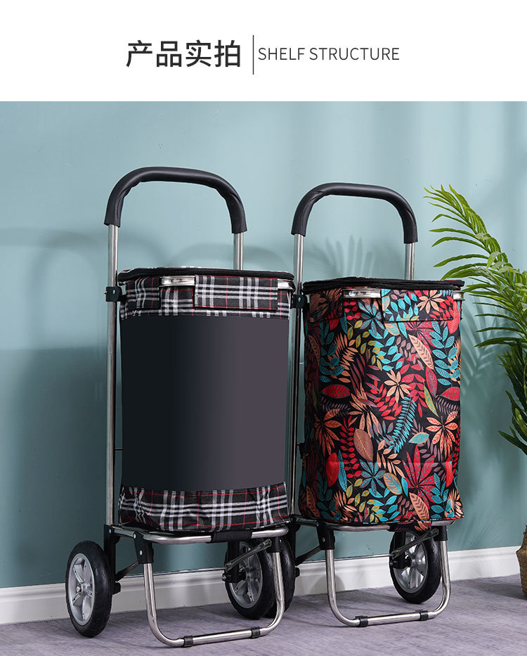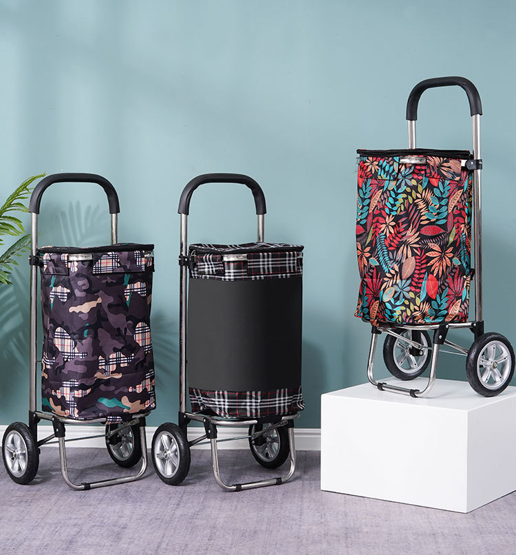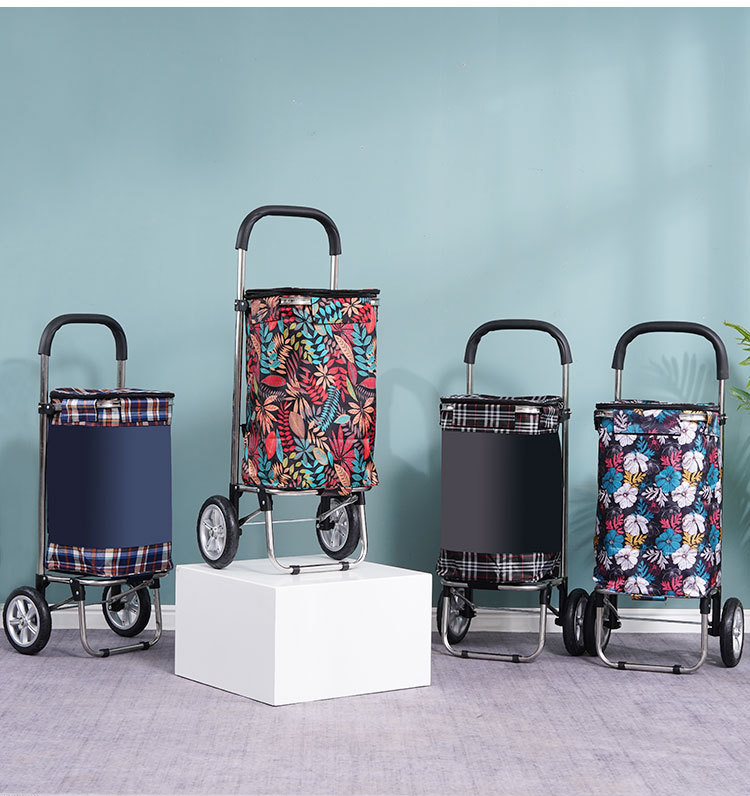 印花买菜车老年人家用超市购物手拉车便携式推车简易行李拉杆拖车