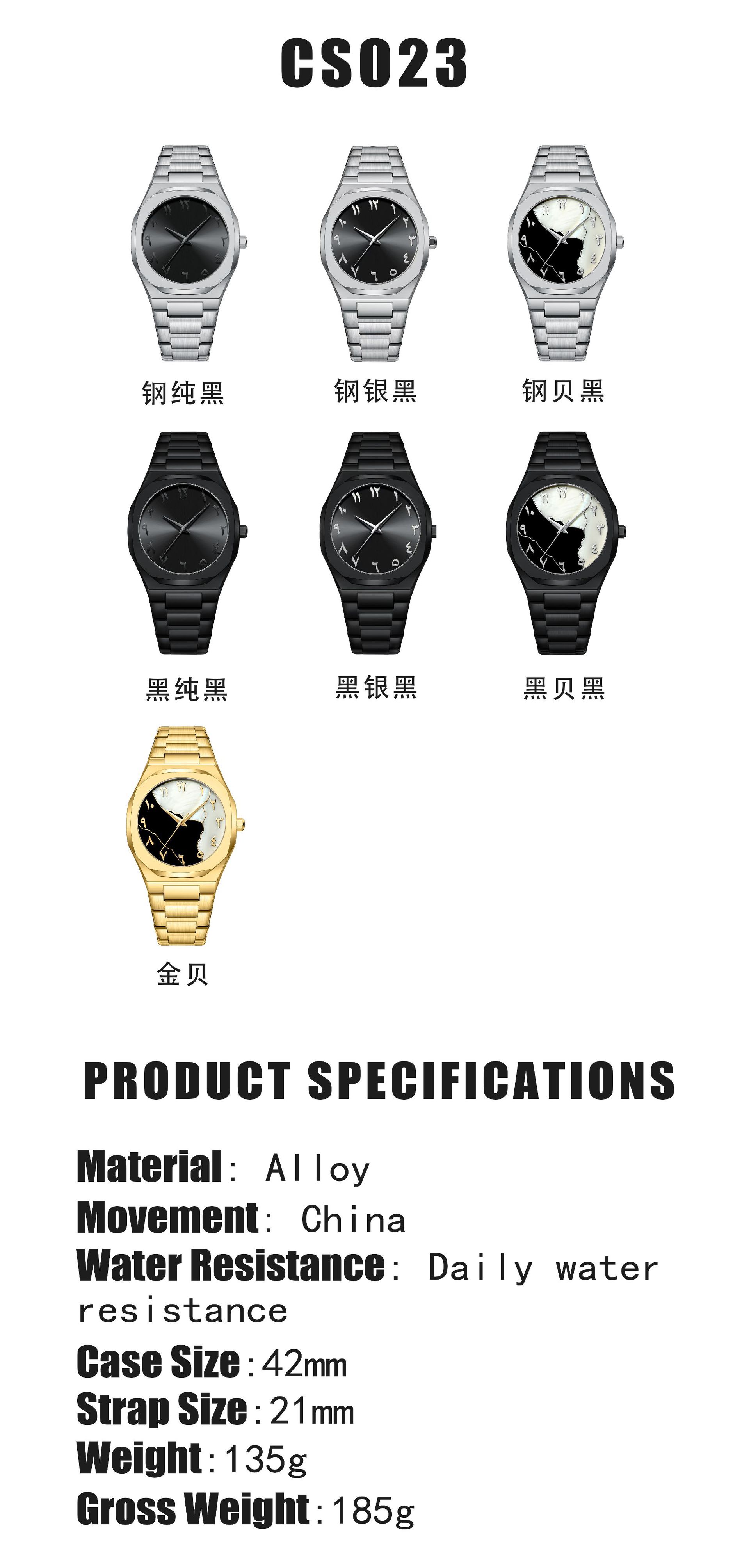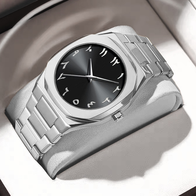 外贸跨境批发防水表男士手表男阿拉伯表盘高级感合金石英表定制