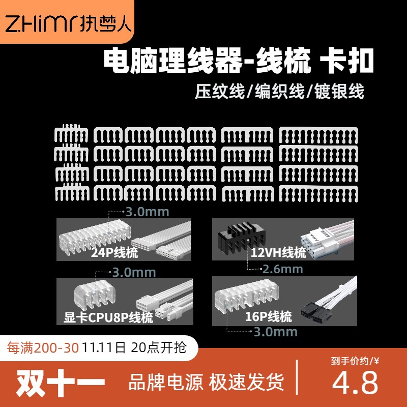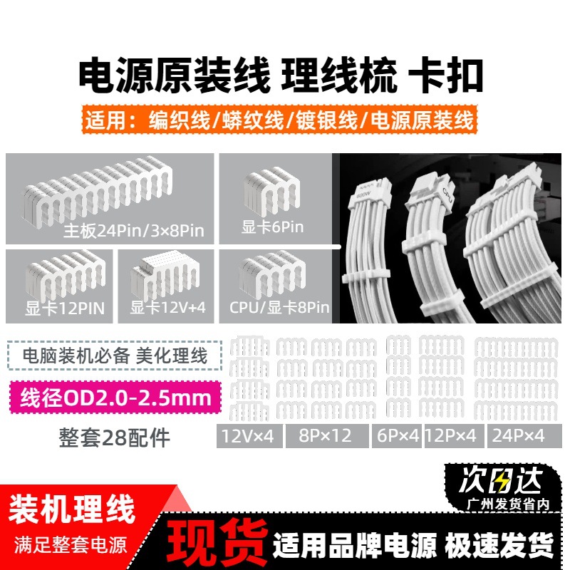 电脑电源模组电缆线卡扣线理线器24Pin主板12P显卡CPU8P线梳收纳