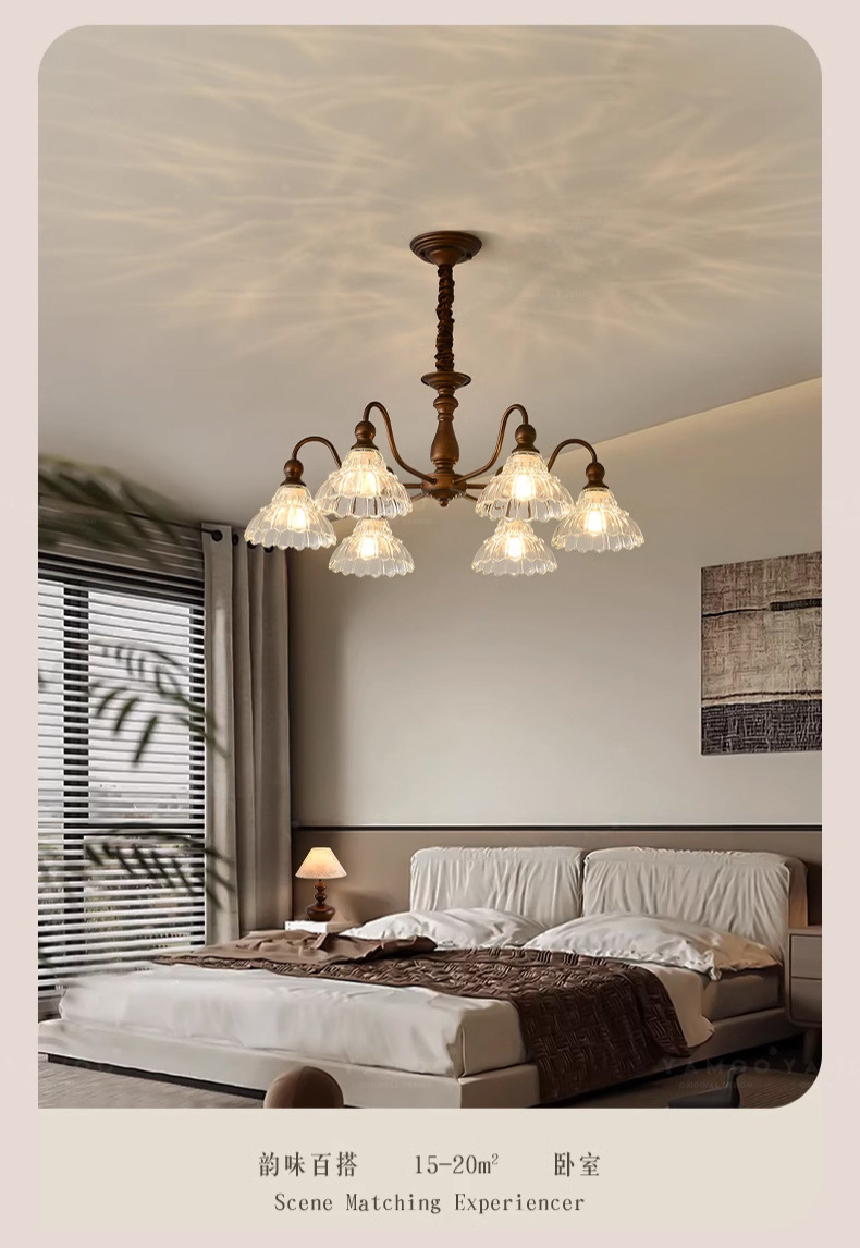 中世スタイルのフレンチリビングルームランプホールメインライトモダンシンプルフラワーレトロわびさびスタイルベッドルームランプレストランシャンデリア