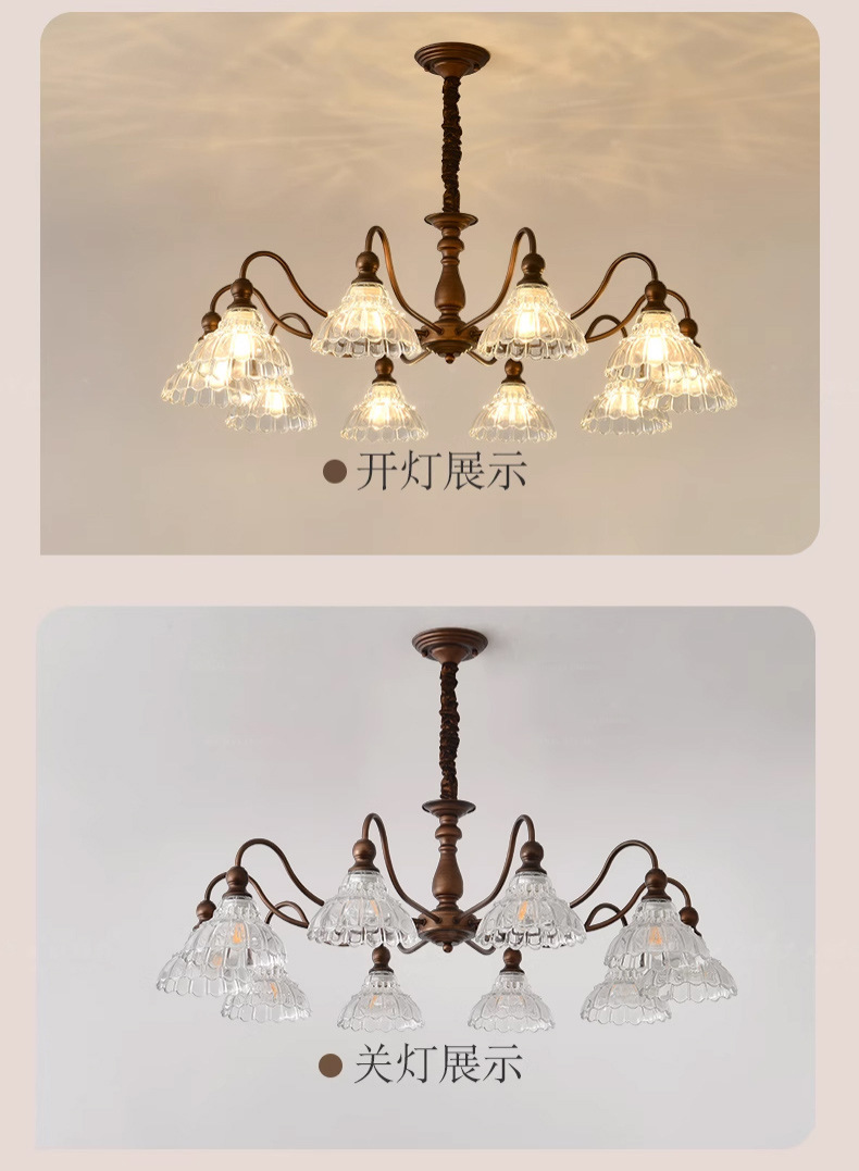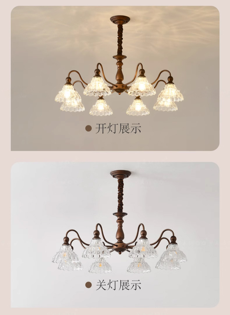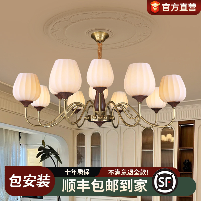 复古卧室法式中古风客厅吊灯高级感美式大厅主灯饰中山胡桃木灯具