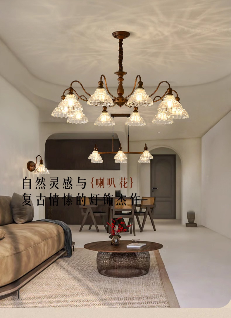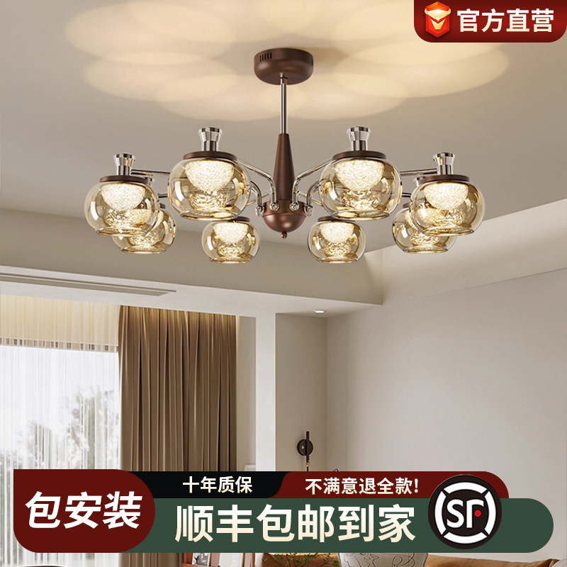 中古风客厅吊灯侘寂美式LED复古玻璃大气家用艺术高级感大厅吊灯