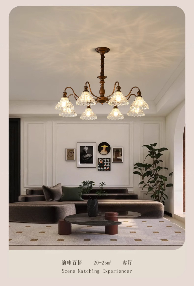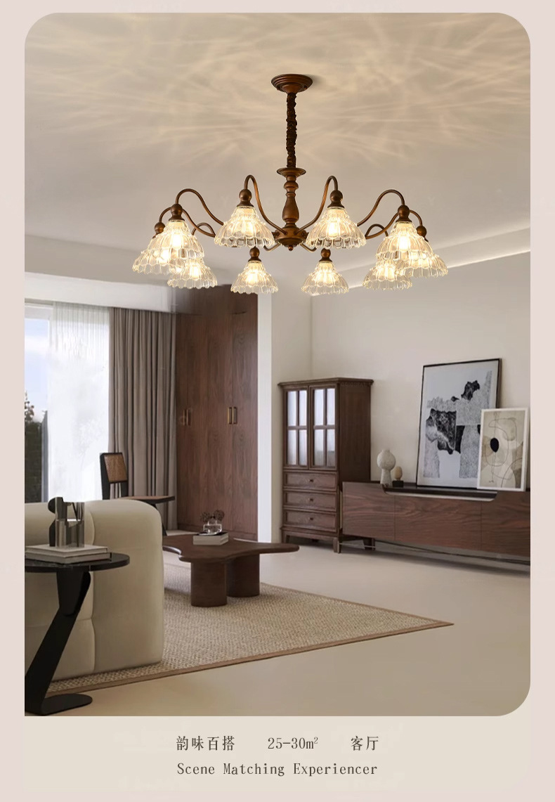 フレンチミッドセンチュリースタイルのリビングルーム用シャンデリア、レトロなウォールナット材、2024年新作照明、デザイナーズセンスの主寝室用ランプ