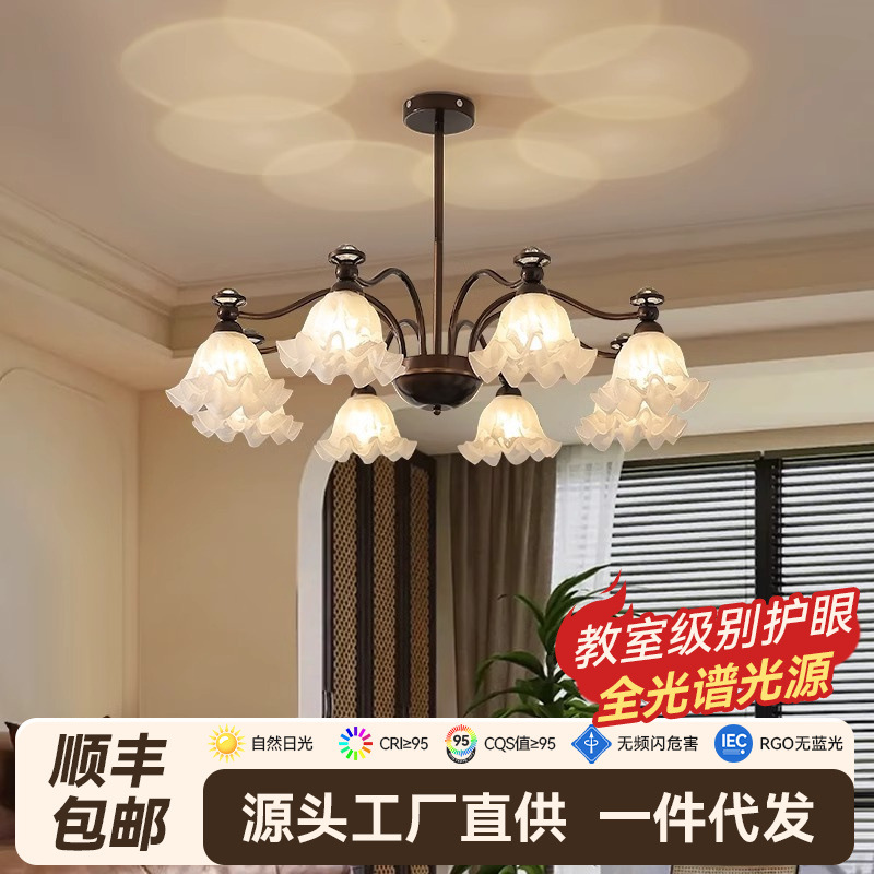 美式复古客厅吊灯法式中古餐厅高级感卧室灯主卧2025新款全屋灯具