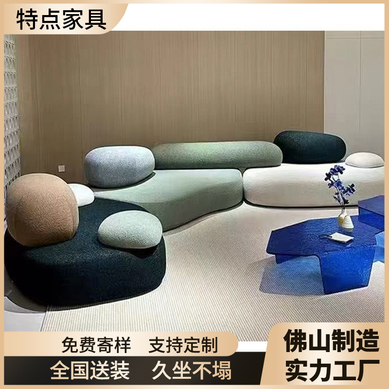 北欧轻奢设计师客厅创意家具极简科技布接待弧形豌豆沙发美容院