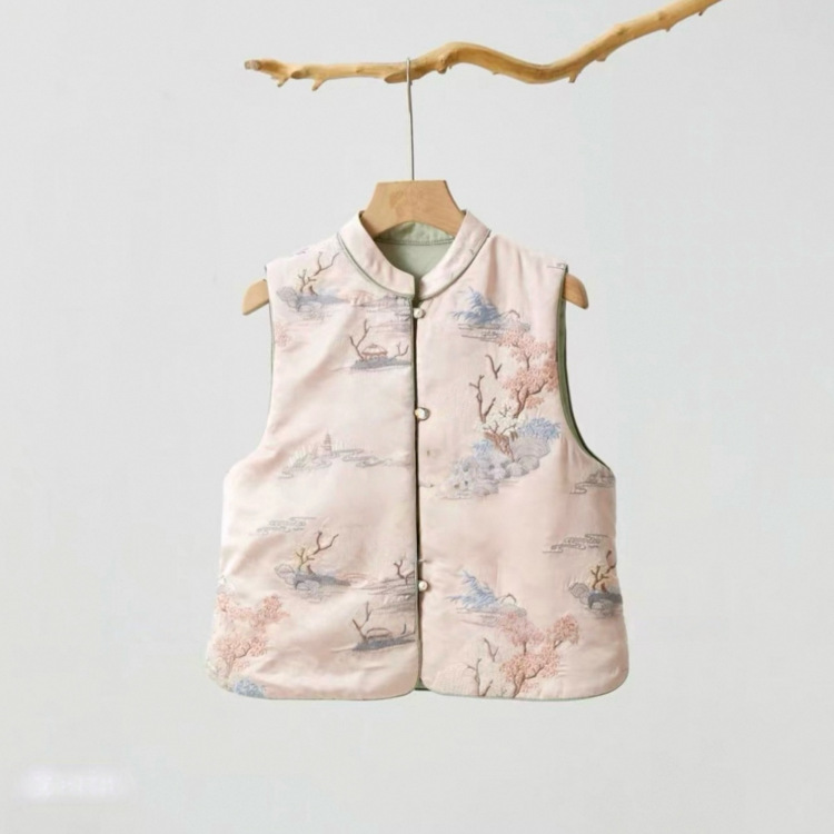 双面穿刺绣提花加棉立领百搭时尚新中式国风马甲马夹