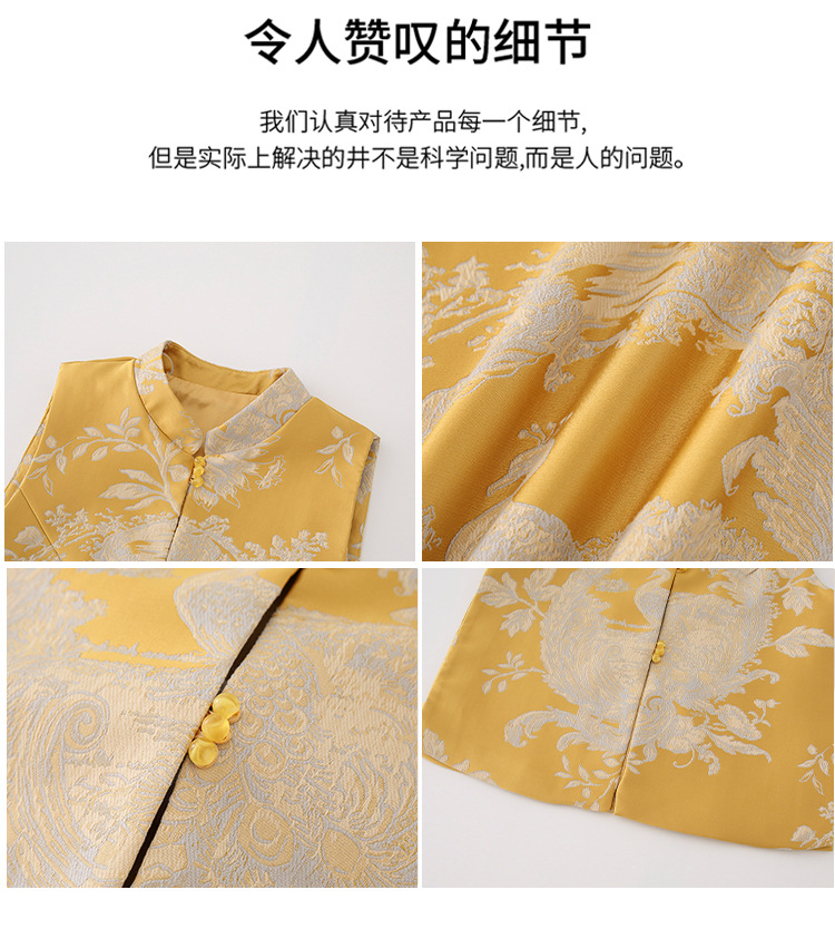 新中式轻奢高级感马甲女2025春秋新款宽松黄色国风提花背心