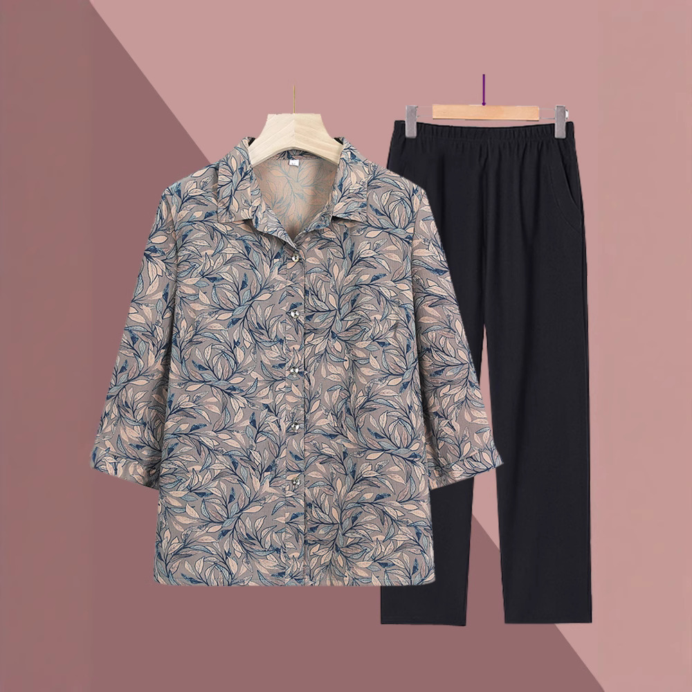 おばあちゃんの夏スーツ、お母さんの夏スーツ、七分袖シャツ、中高年女性のシャツ、夏の新しい中国服